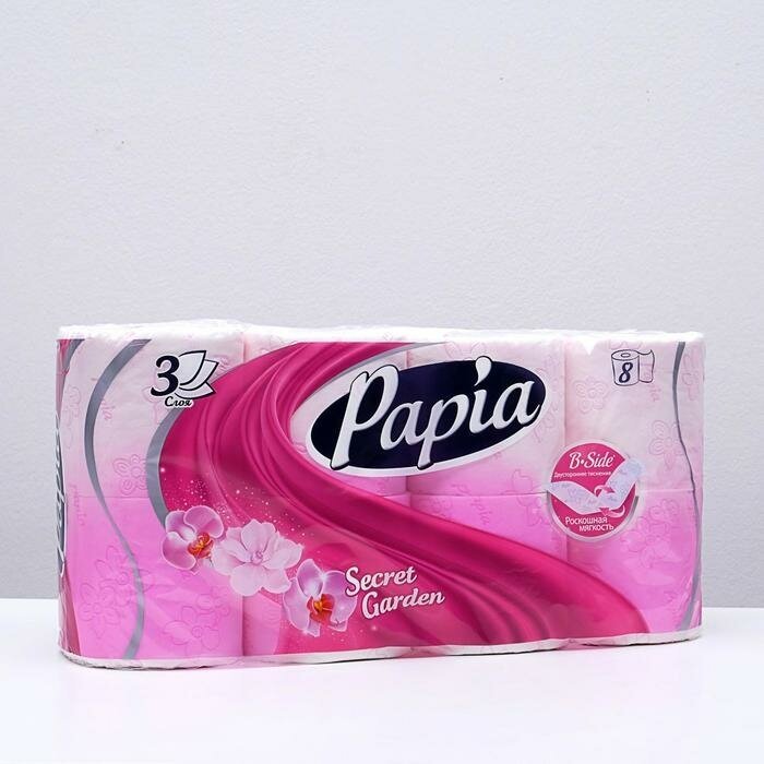СохранитьТуалетная бумага Papia Secret Garden белая 3 слоя, 8 рулонов интересное: