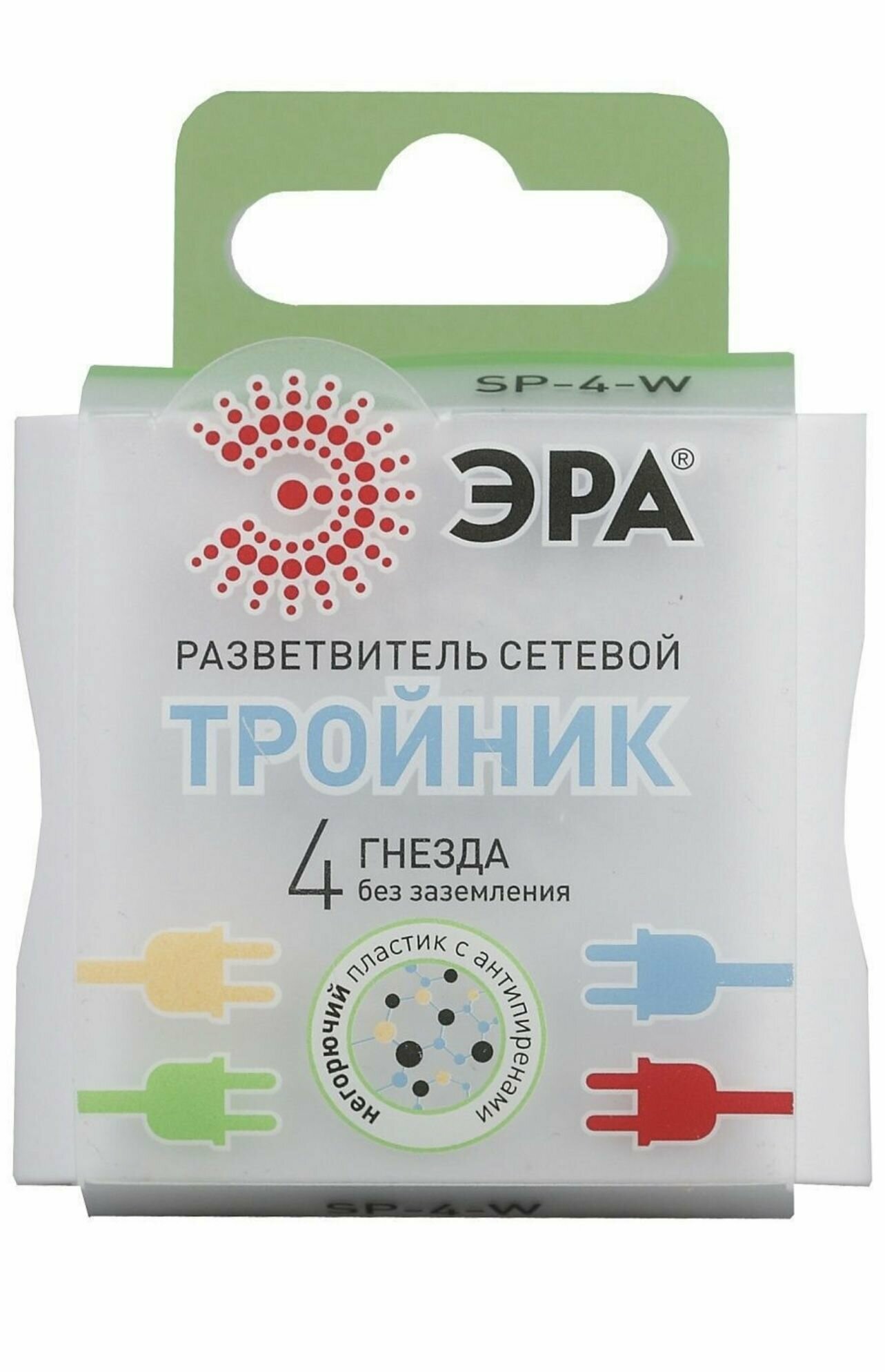 Сетевой тройник ЭРА, 4 розетки, без заземления, без шторок, белый, SP-4-W Эра