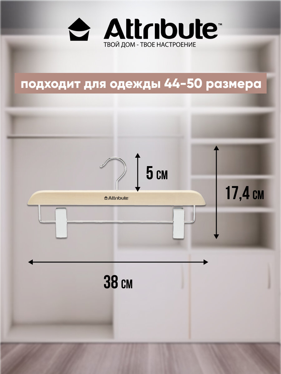 Вешалка для брюк/юбок с зажимами "SILUET CREAM", натуральное дерево