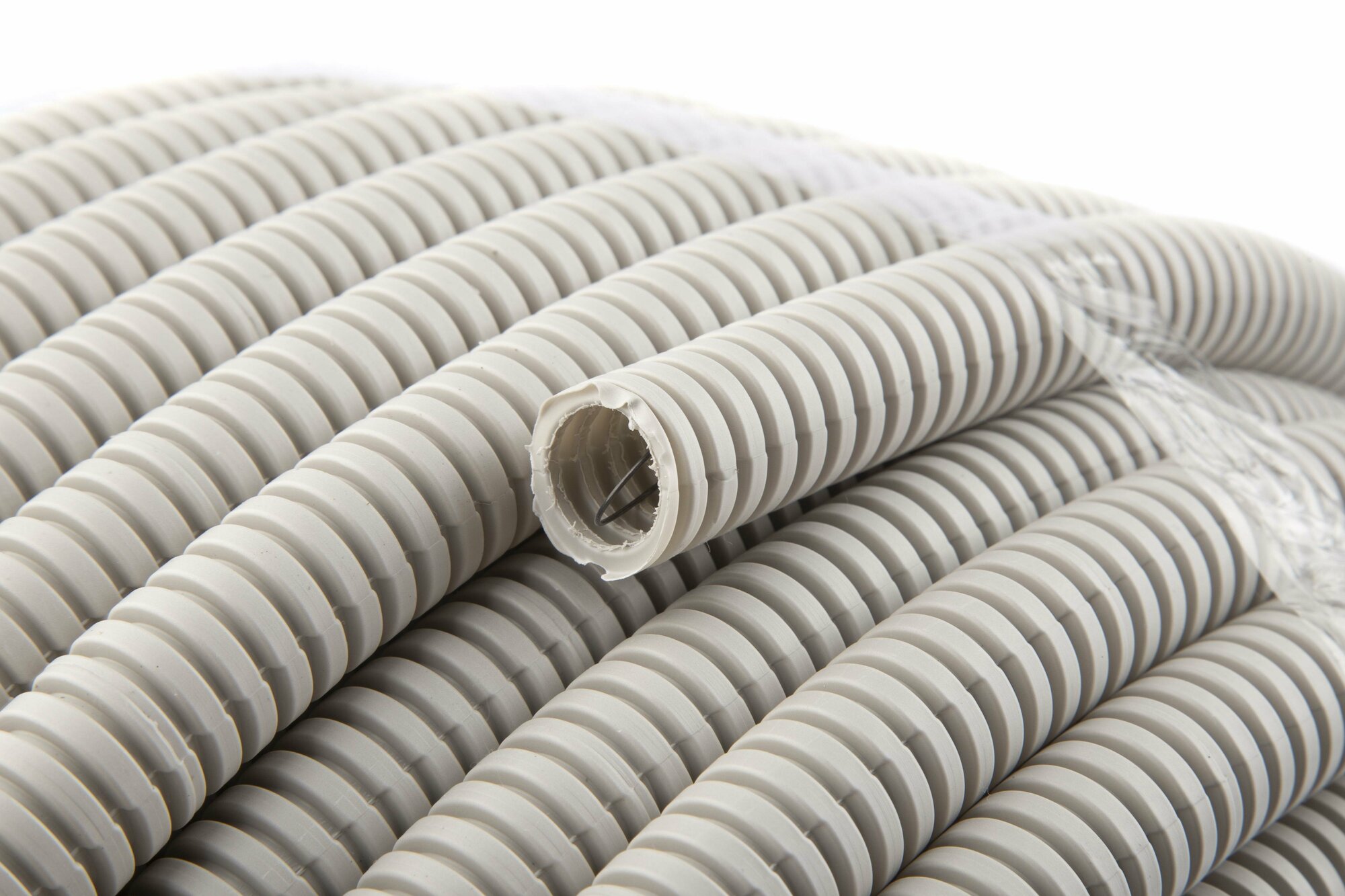 Труба гофрированная ПВХ d20мм с протяжкой сер. (уп.100м) Урал Пак ГФ-0101720-100