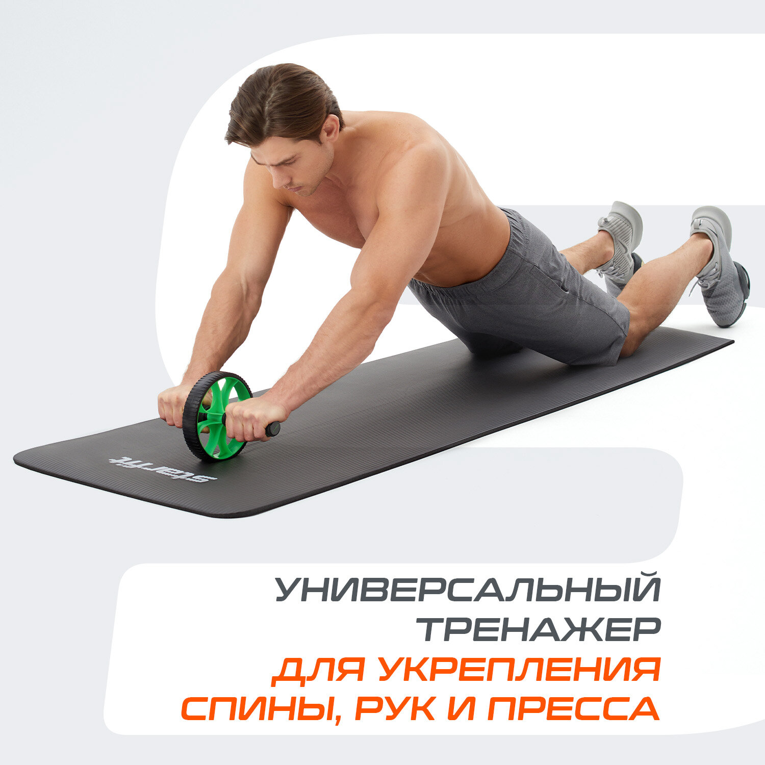 ONLYTOP Ролик для пресса ONLYTOP, 2 колеса, с ковриком, цвета микс