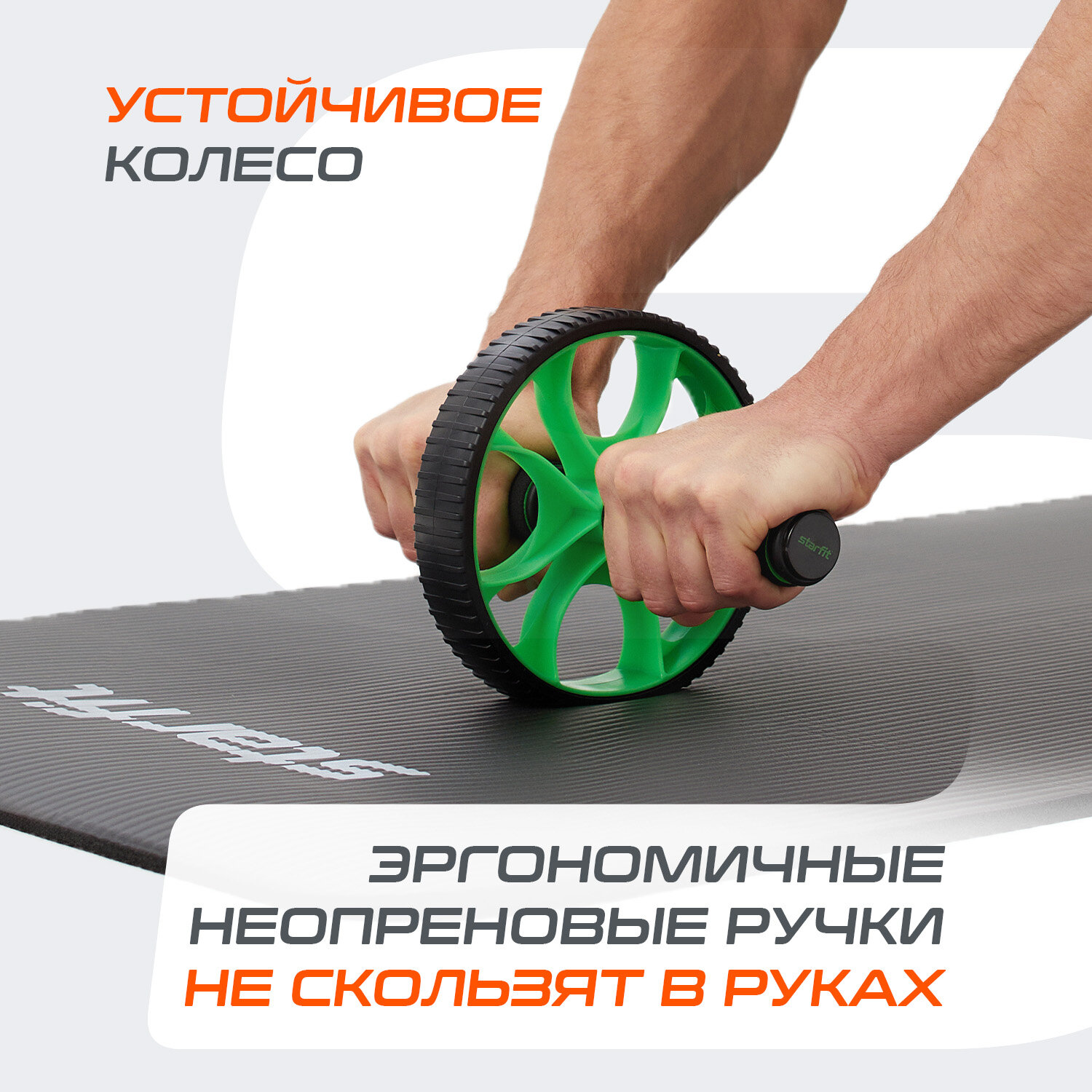 Ролик для пресса STARFIT RL-103 с неопреновыми ручками, черный/зеленый интересное: