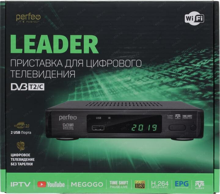 Приставка DVB-T2/C Perfeo "LEADER" для цифр.TV, Wi-Fi, IPTV, HDMI, 2 USB, DolbyDigital, пульт ДУ
