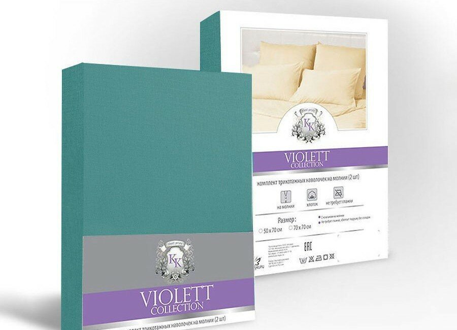 Комплект трикотажных наволочек VIOLETT 40х60- 2 шт. бирюзовые