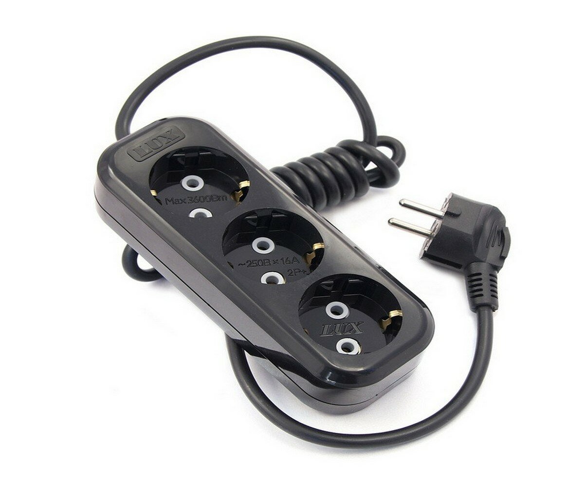Сетевой удлинитель Lux, 3 розетки, 5м с заземлением, черный (У3-Е-05)