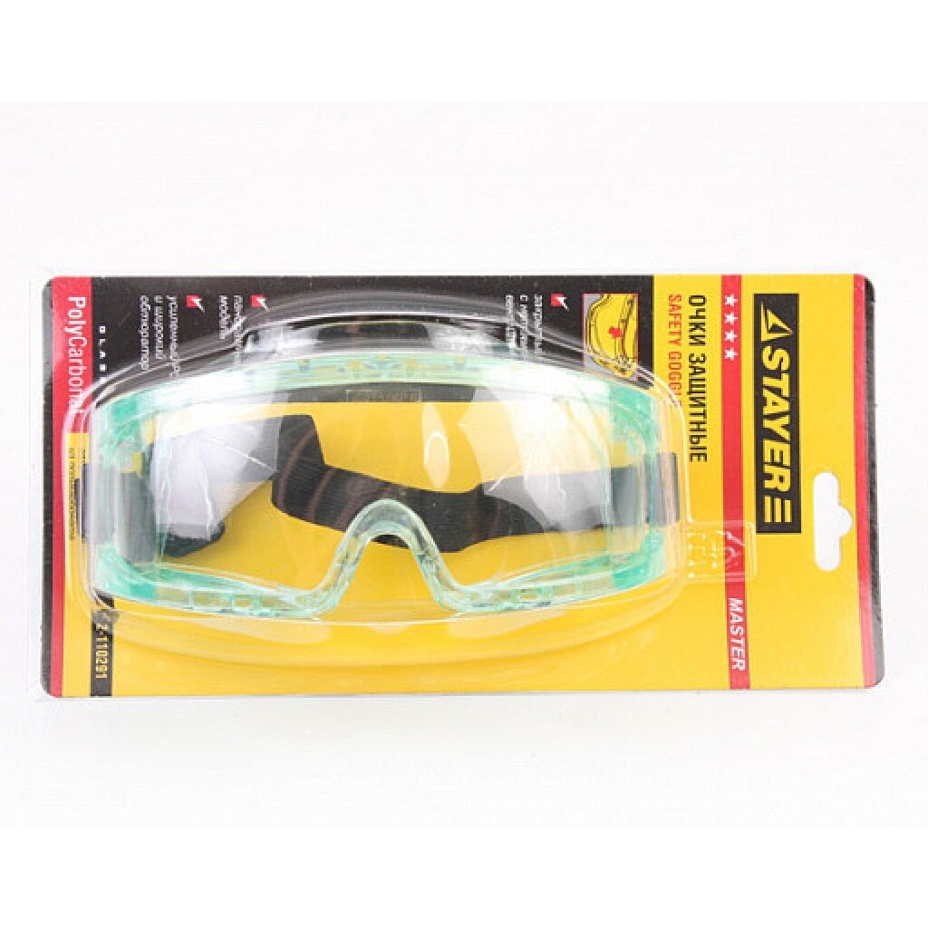STAYER Очки STAYER "MASTER" защитные панорамные закрытого типа с непрямой вентиляцией, поликарбонатные прозрачные линзы, ( 2-110291 )