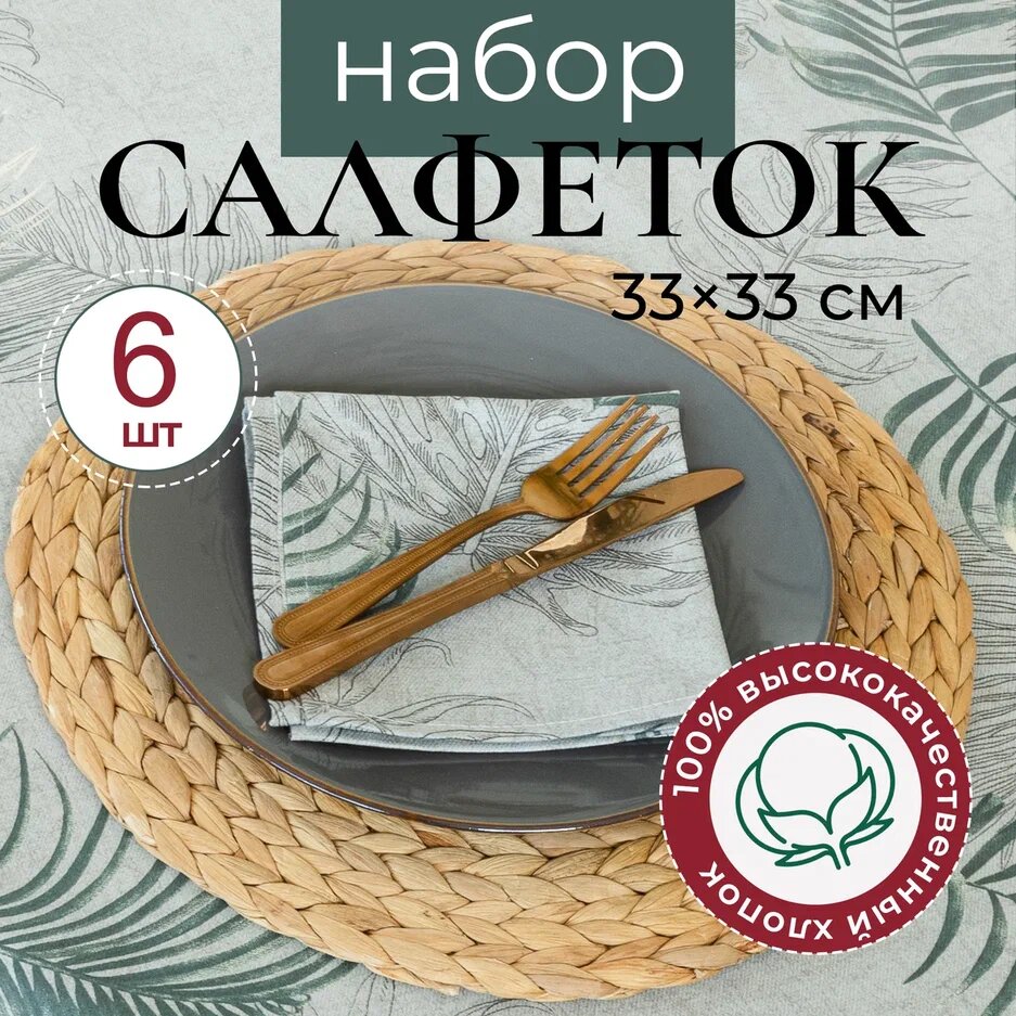 Салфетки сервировочные, набор из 6 шт, хлопок 33 х 33