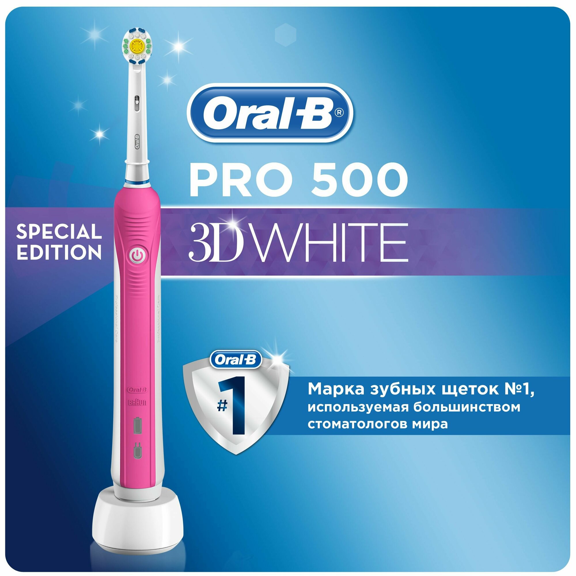 Электрическая зубная щетка Oral-B Pro 500 3D White, pink