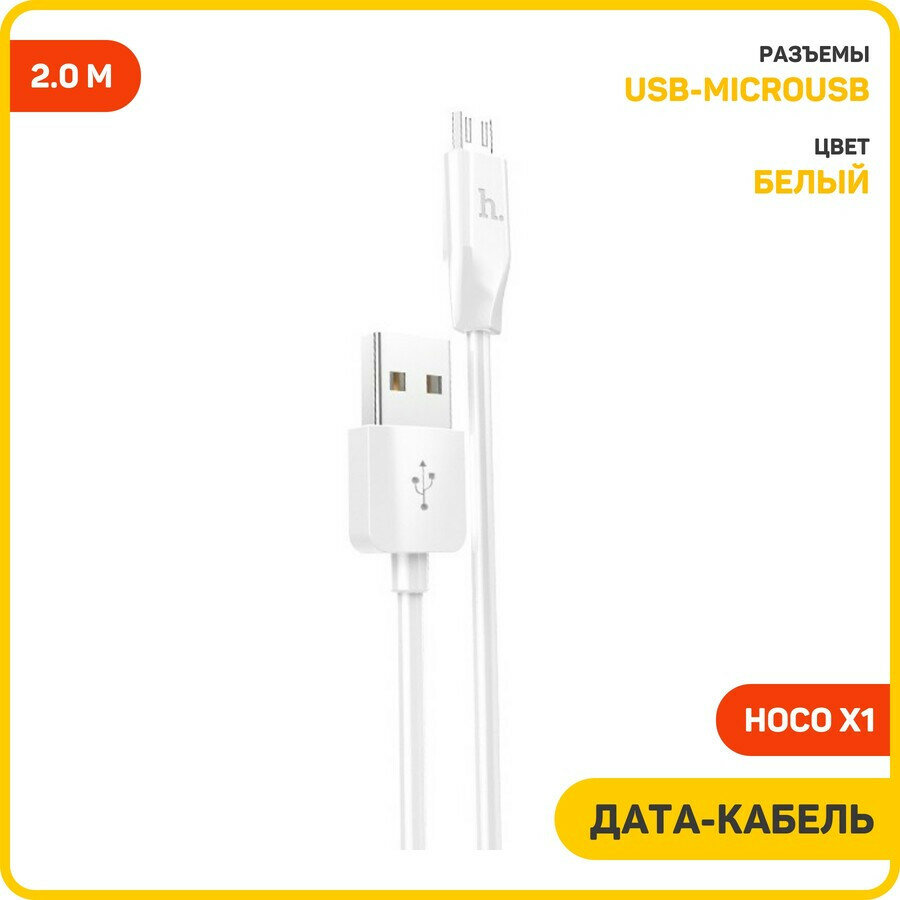 Data кабель USB HOCO X1 micro usb, 2 метра, белый