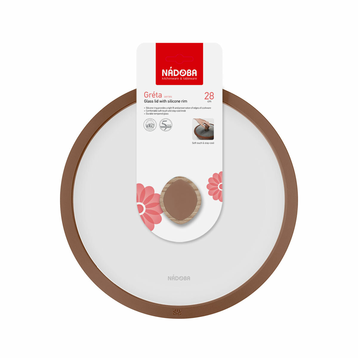 Стеклянная крышка Nadoba Greta с силиконовым ободом, 28 см .