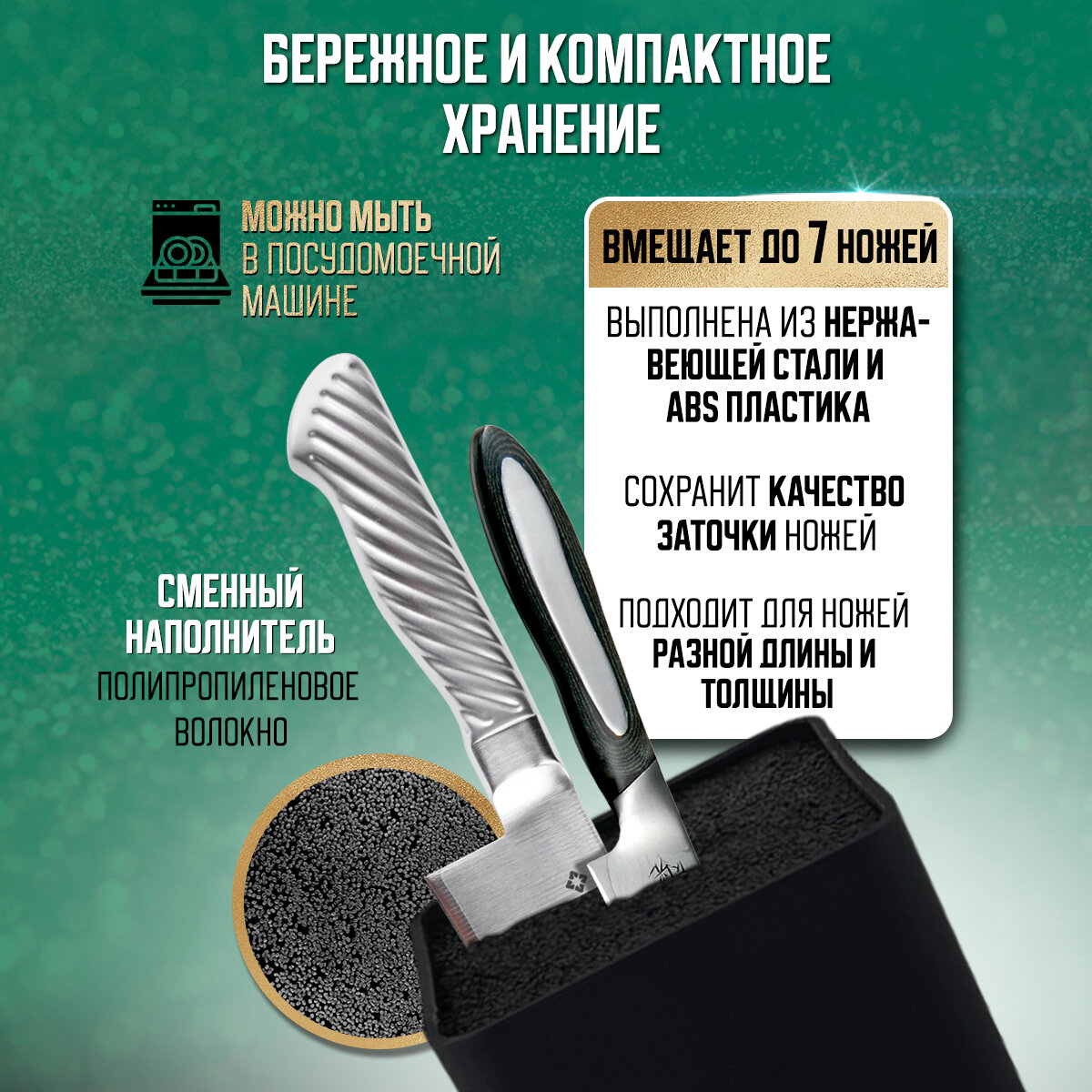 Подставка для Ножей универсальная HATAMOTO (PWBS-15D-BLK), вмещает до 8 ножей
