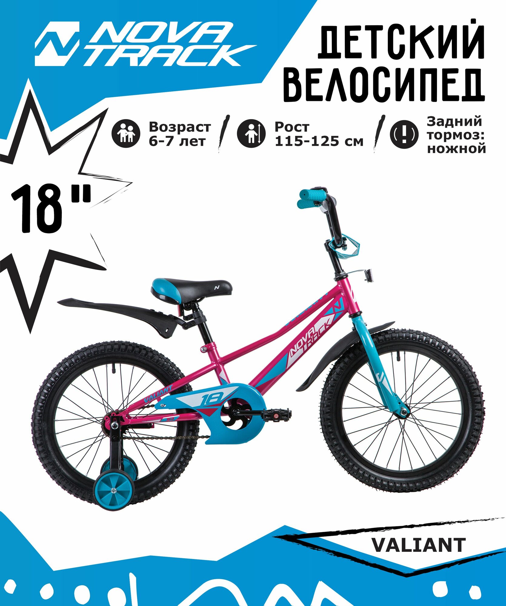 Велосипед NOVATRACK VALIANT 18" (2019) (Велосипед NOVATRACK 18", VALIANT, фуксия, защита А-тип, тормоз нож, короткие крылья, нет багажника)