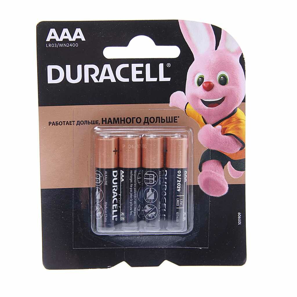 Батарея Duracell Basic, AAA (LR03/24А), 1.5V, 4 шт. (LR03-4BL)