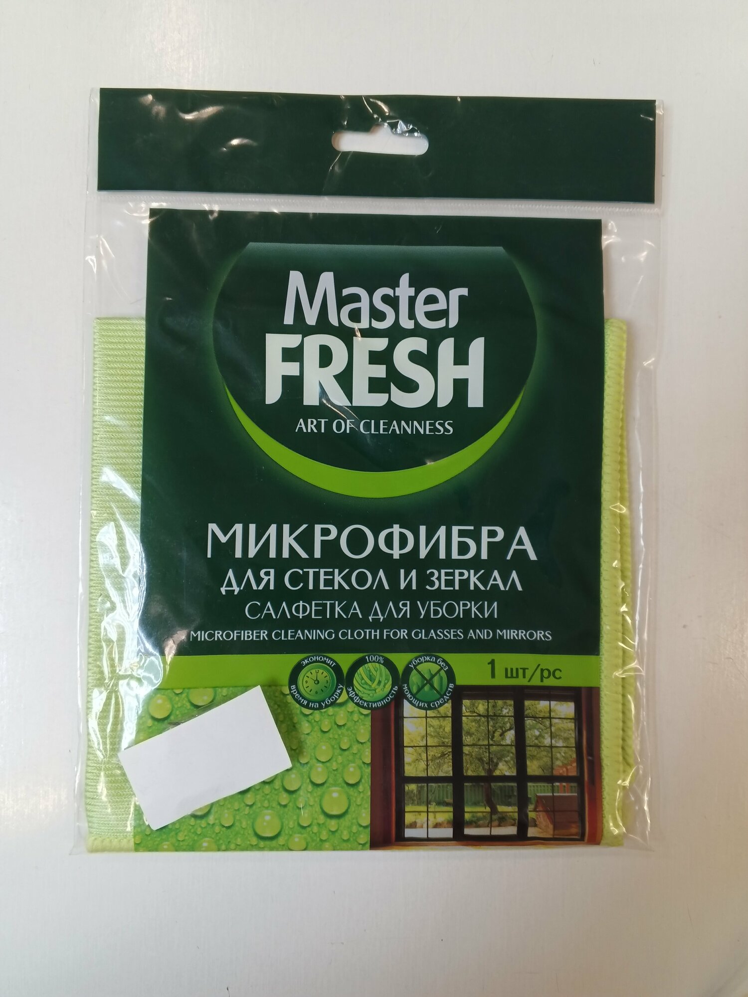 Салфетка для стекол и зеркал Master FRESH микрофибра, желтый/зеленый, 1 лист., 1 уп.