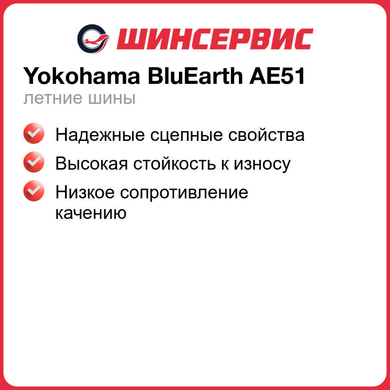 YOKOHAMA R6050 Автошина R16 205/60 Yokohama BluEarth-GT AE 51 96W лето R6050