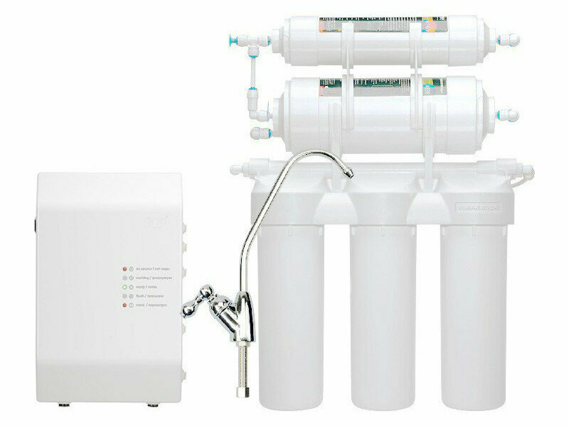 Цена стоит этой покупки. Отличный фильтр с 6 ступенчатой очисткой воды. Электронное управление, автопромывка мембраны, светодиодные индикаторы, помпа для повышения давления, ресурс стандартного фильтрующего модуля аж 50000 л.