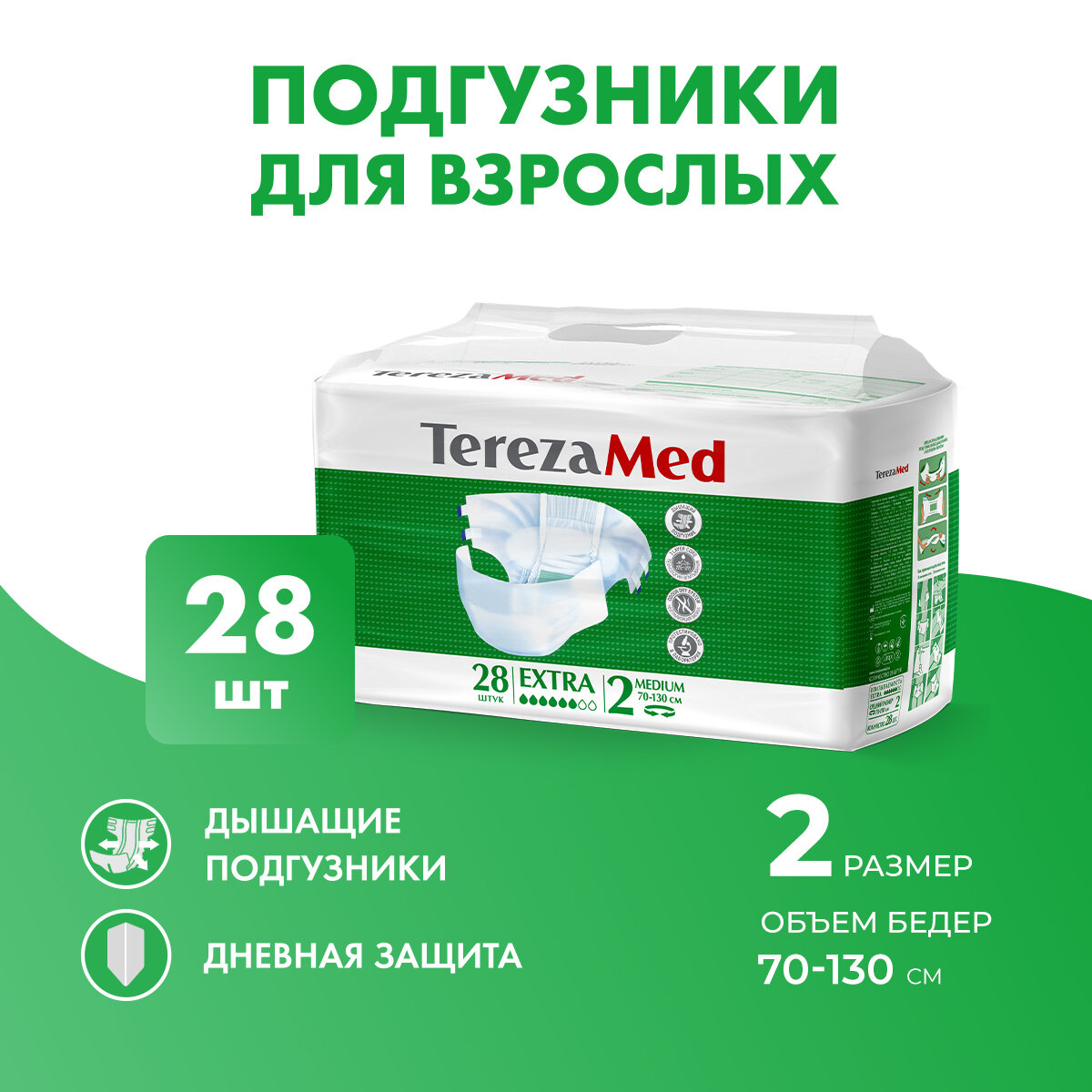 Подгузники для взрослых TerezaMed Extra Medium (№2), объем талии 70-130 см, 28 шт.