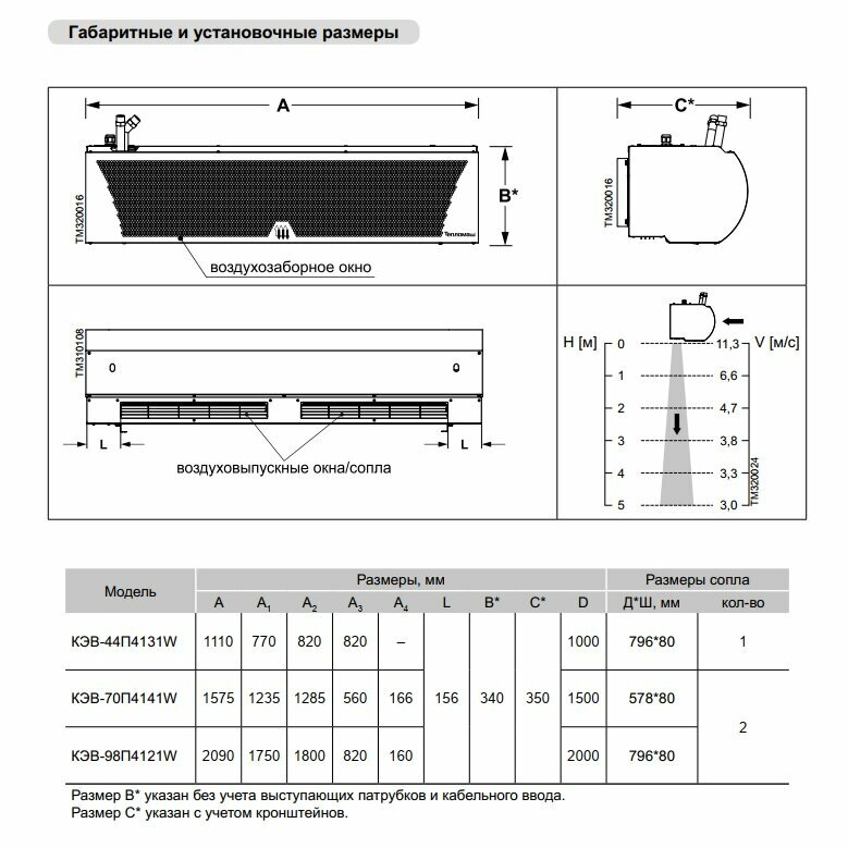 | Минимальная высота установки тепловой завесы | 3 м |