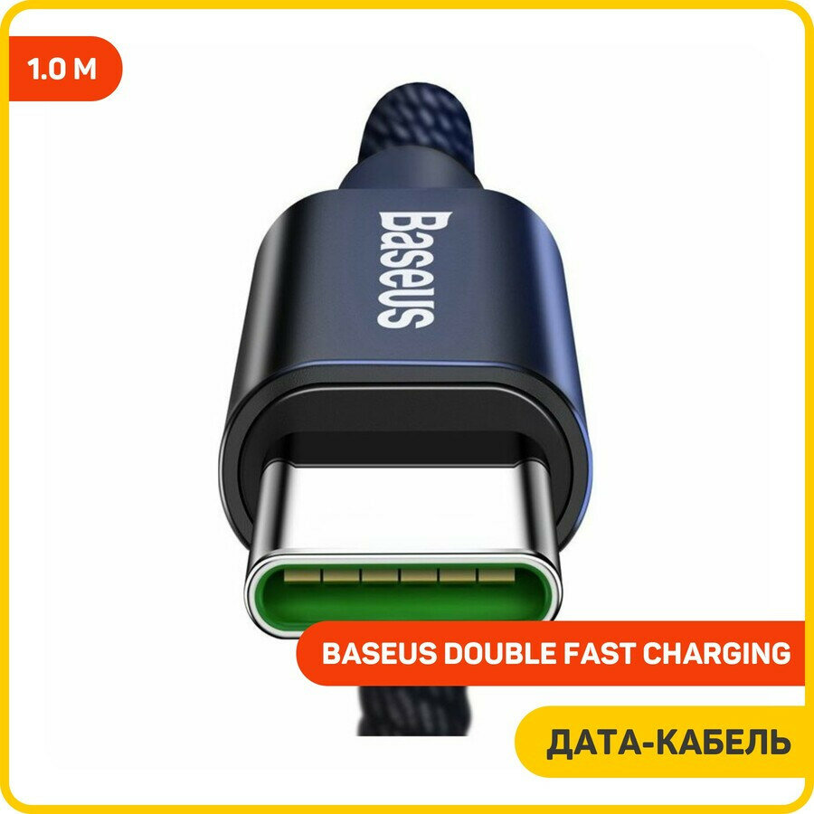 Дата-кабель Baseus Double Fast Charging USB-Type-C (плетеный шнур / 5 A) 1 м, черный интересное: