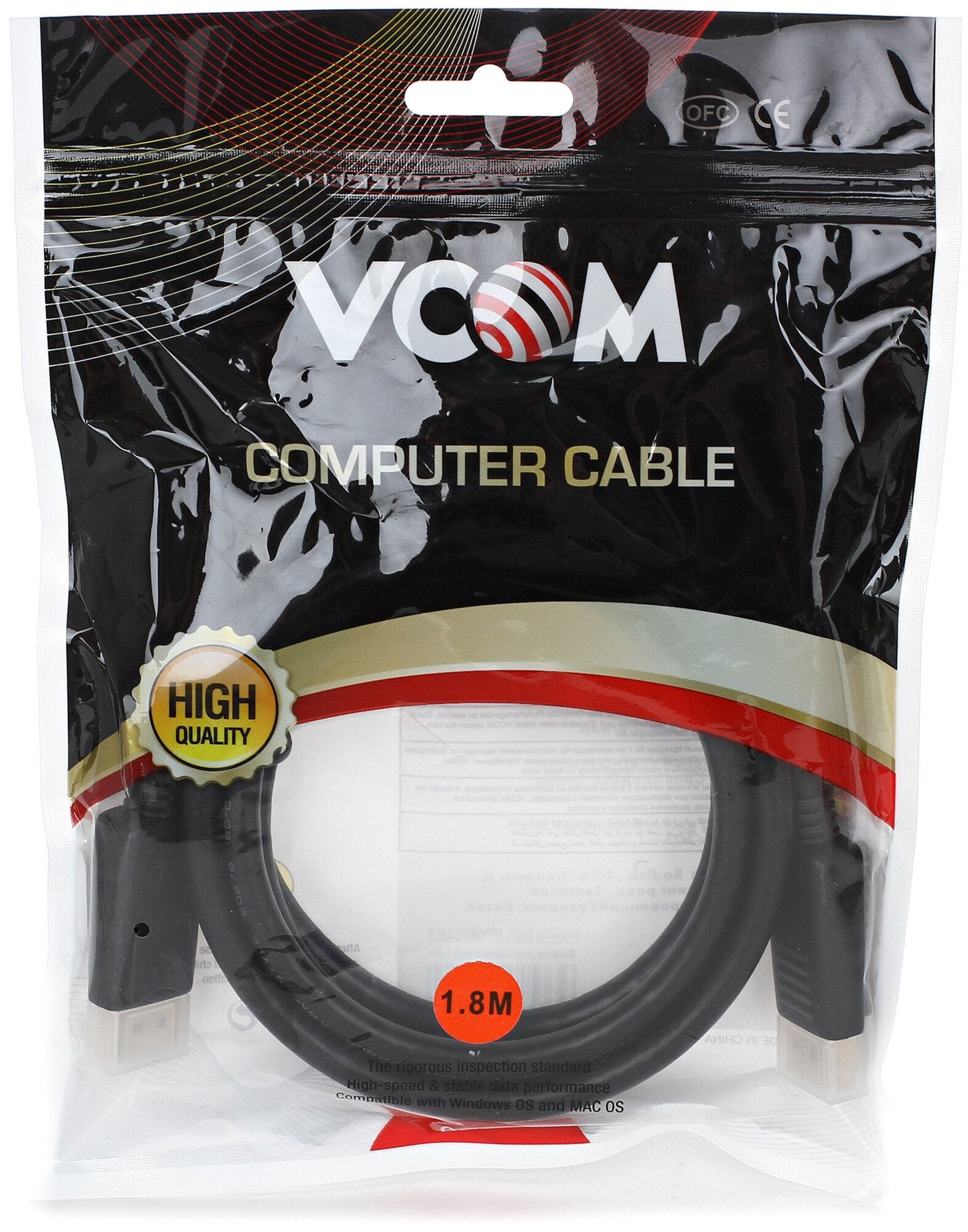 VCOM Кабель соединительный DISPLAY PORT v1.2, 4K60Hz, 1,8m VHD6220-1.8M VHD6220-1.8MO