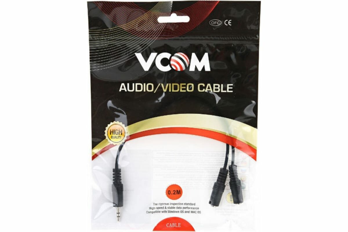 Кабель-адаптер 3.5ST(M)/2*3.5 ST(F), 0.2метра VCOM Кабель-адаптер 3.5ST(M)/2*3.5 ST(F), 0.2метра VCOM