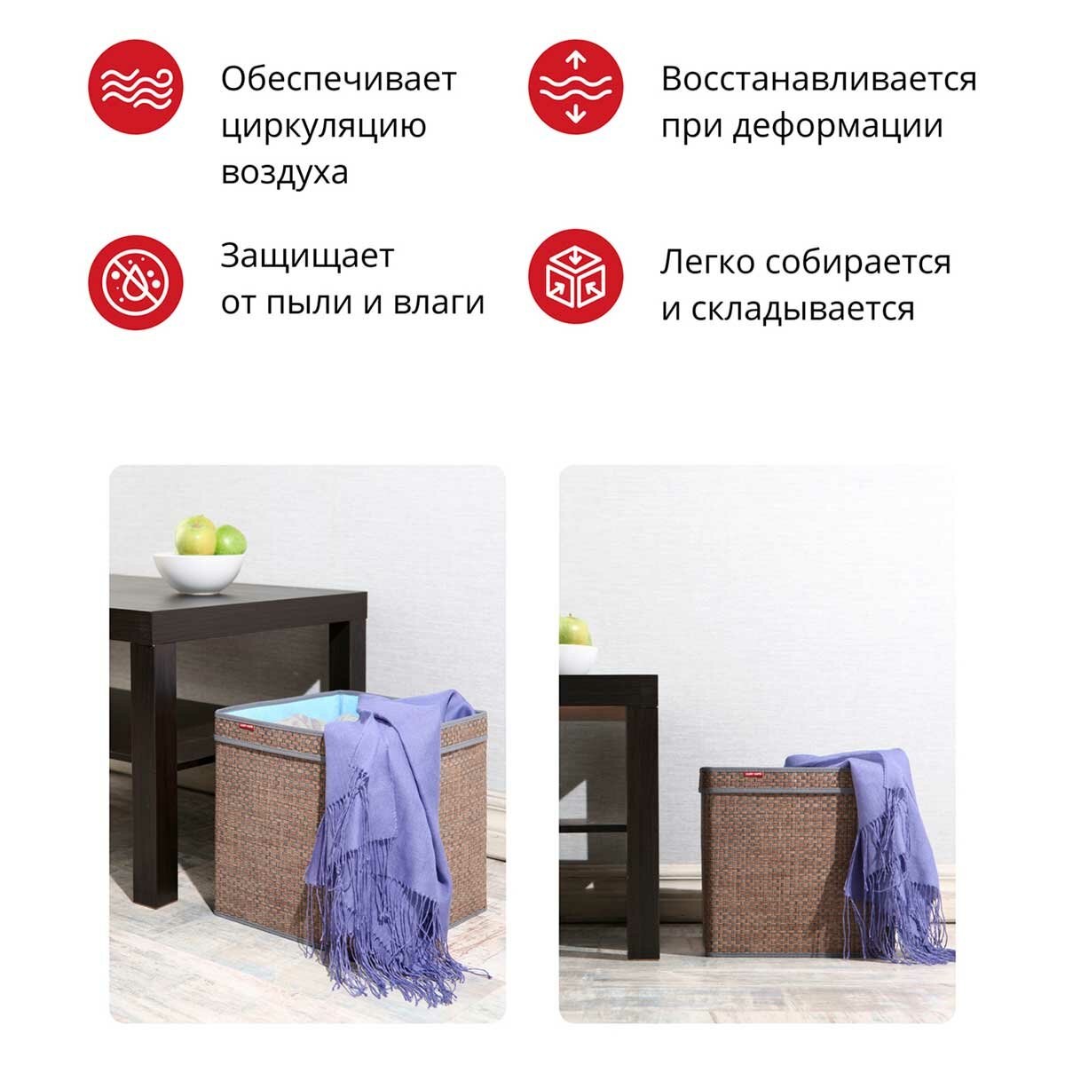 Корзина для хранения с ручками 30х30х30