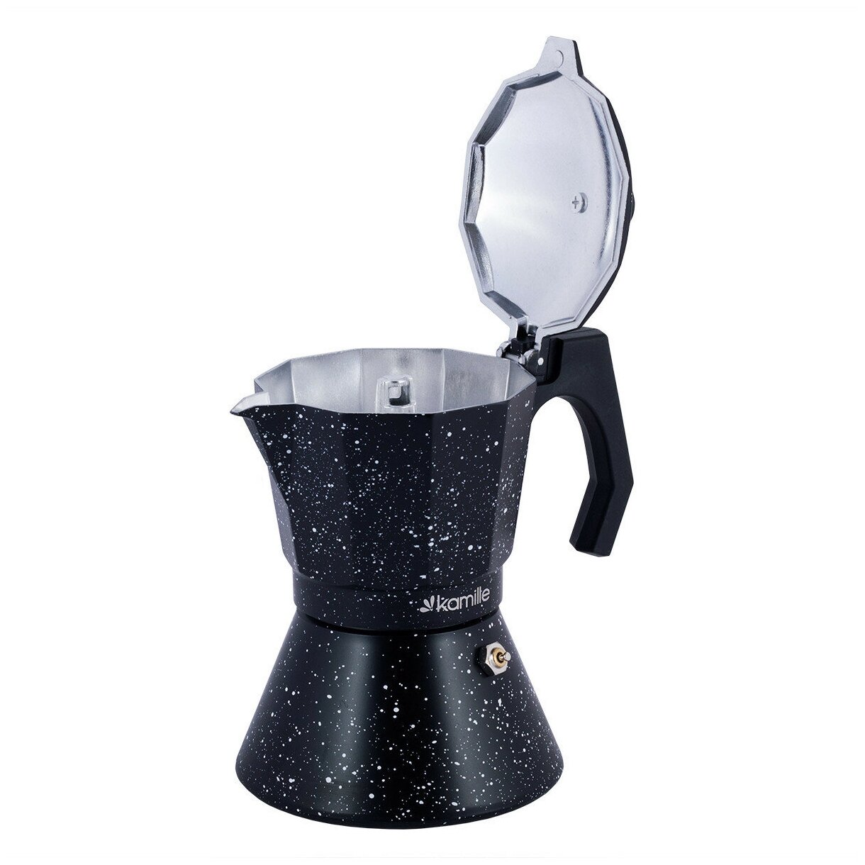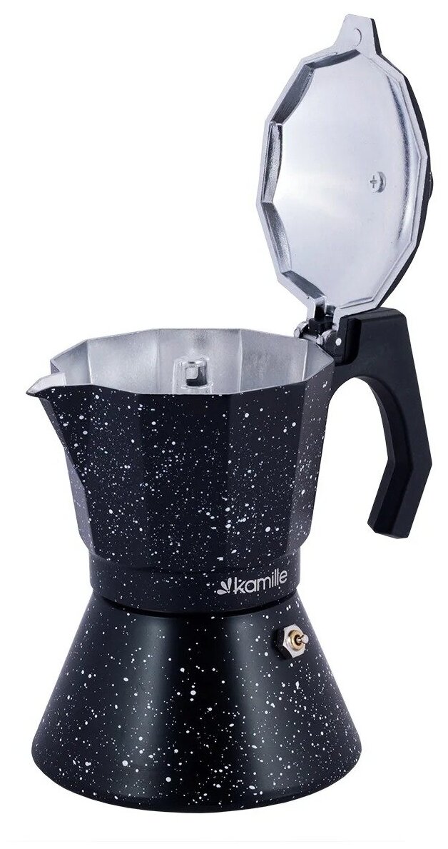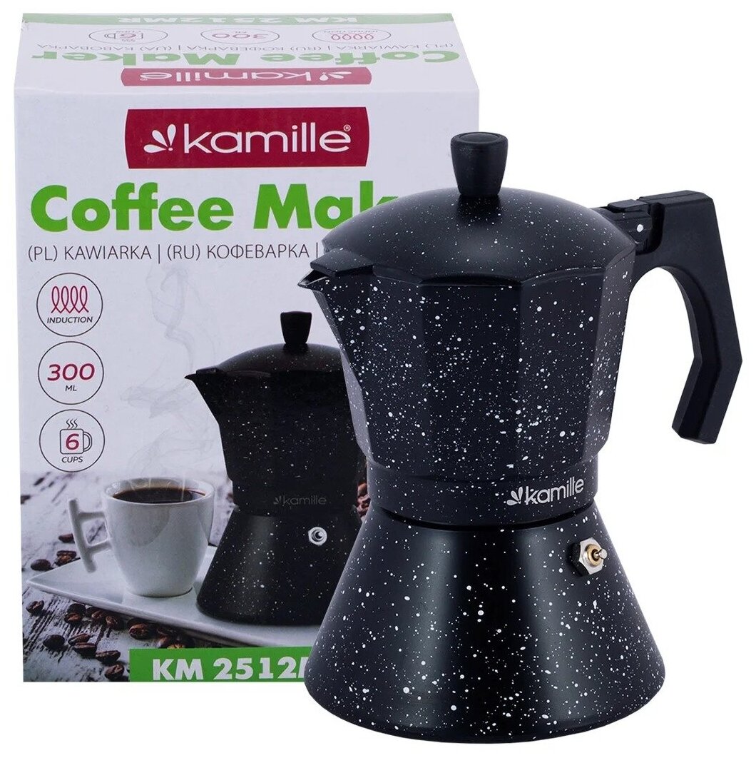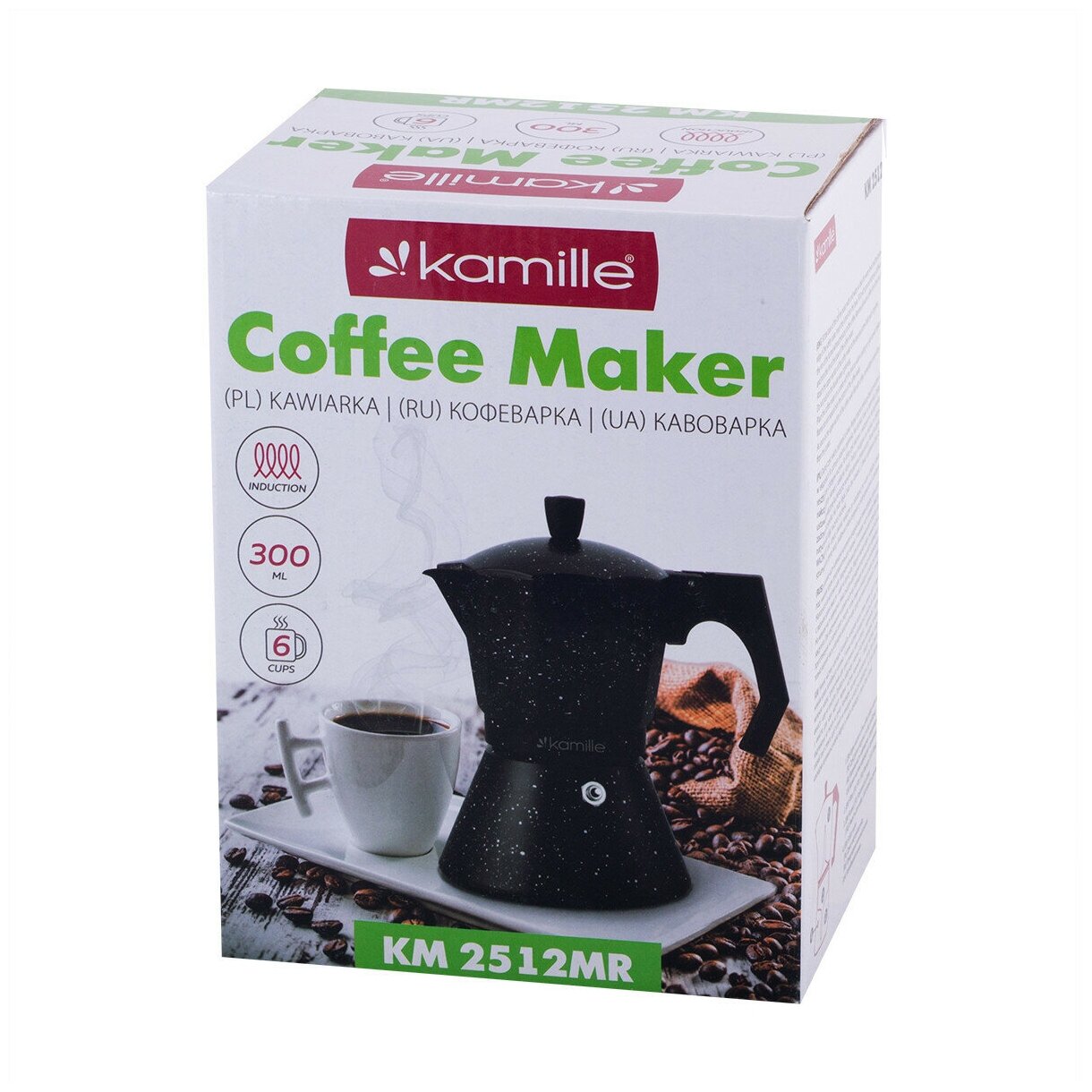 Гейзерная кофеварка Kamille 2512 (300 мл), 300 мл, черный мрамор