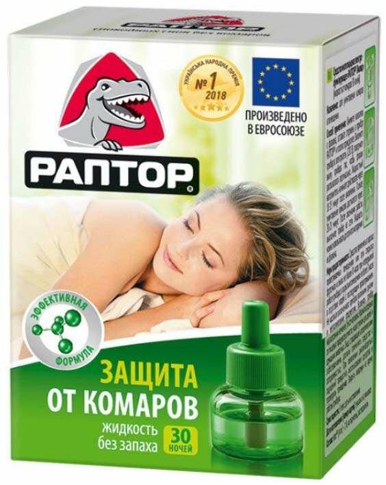 СохранитьЖидкость для фумигатора Раптор от комаров, 40 г, 20 мл, 30 ночей, зеленый/белый интересное: