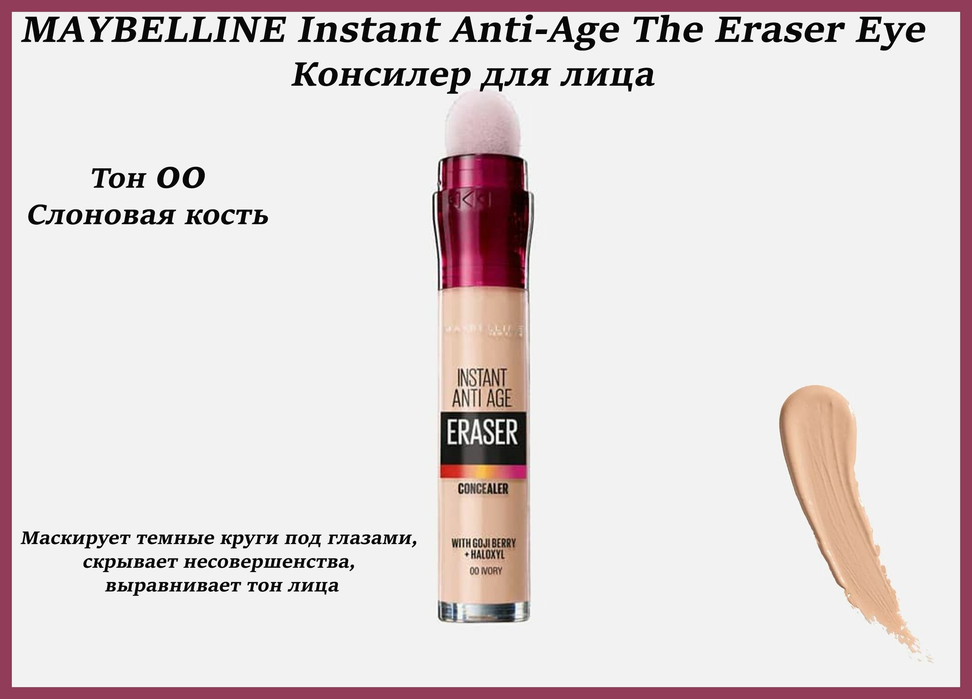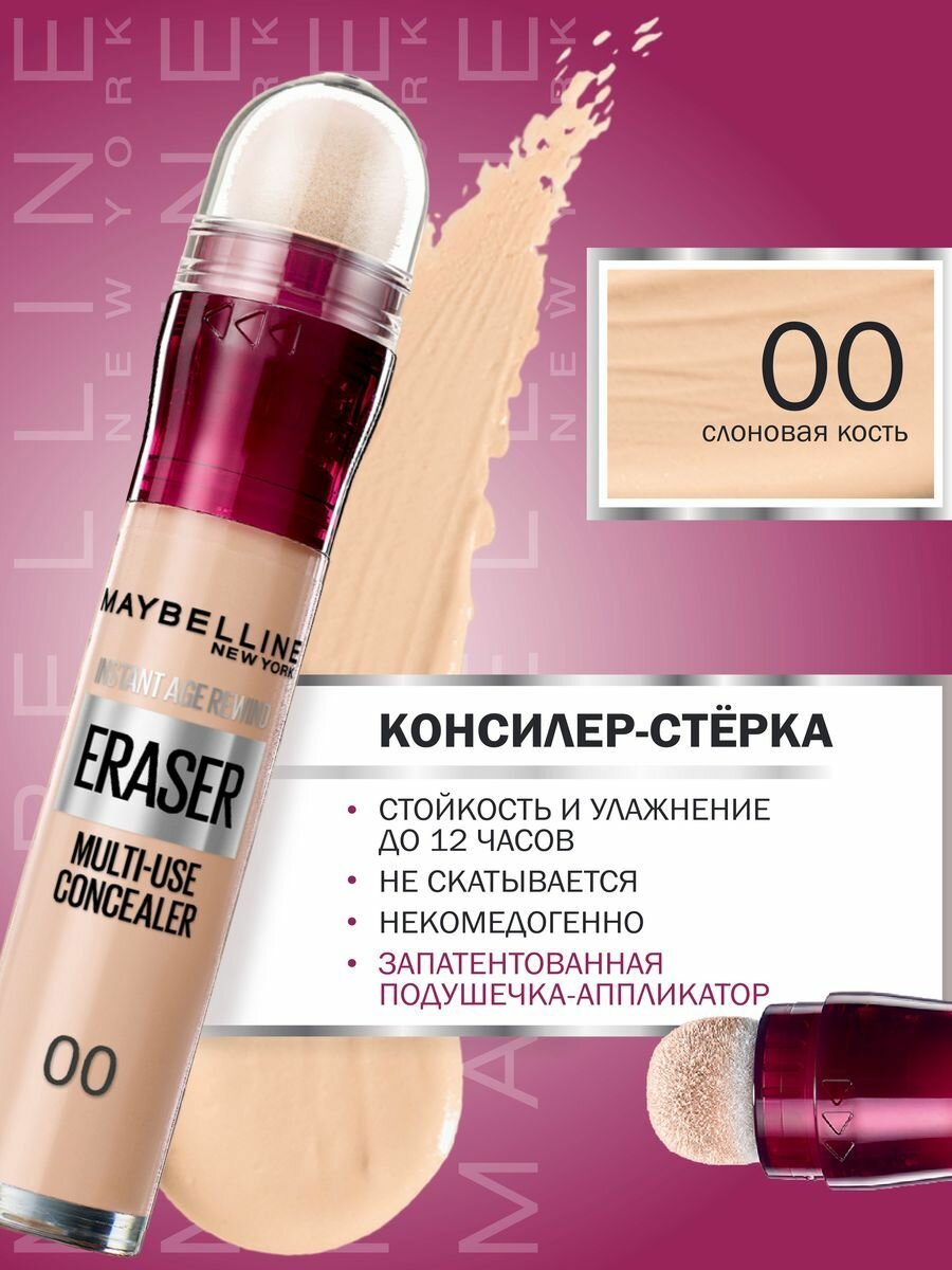 Maybelline New York консилер Instant Anti-Age Eraser №00 слоновая кость