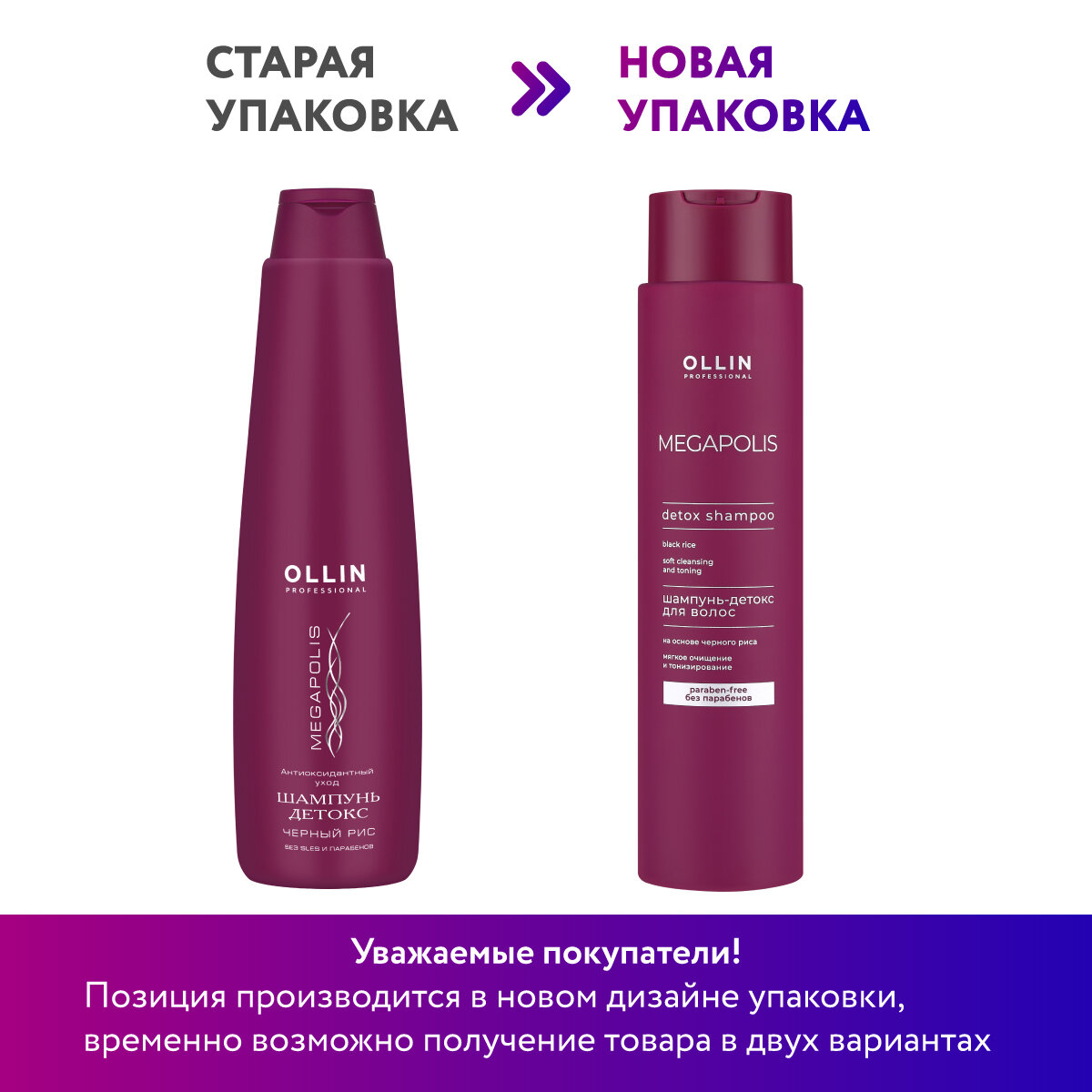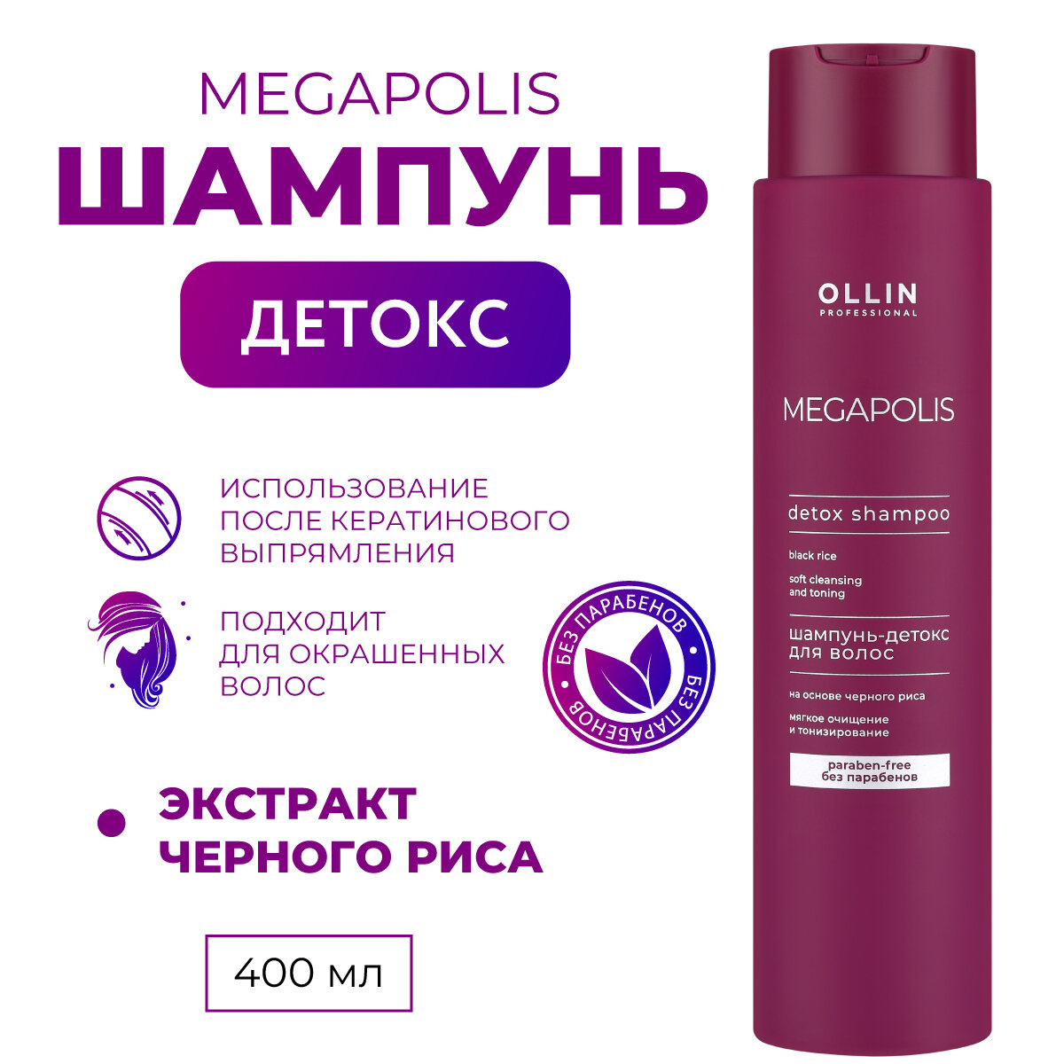 OLLIN MEGAPOLIS Шампунь-детокс на основе чёрного риса (без сульфатов И парабенов), 400 мл