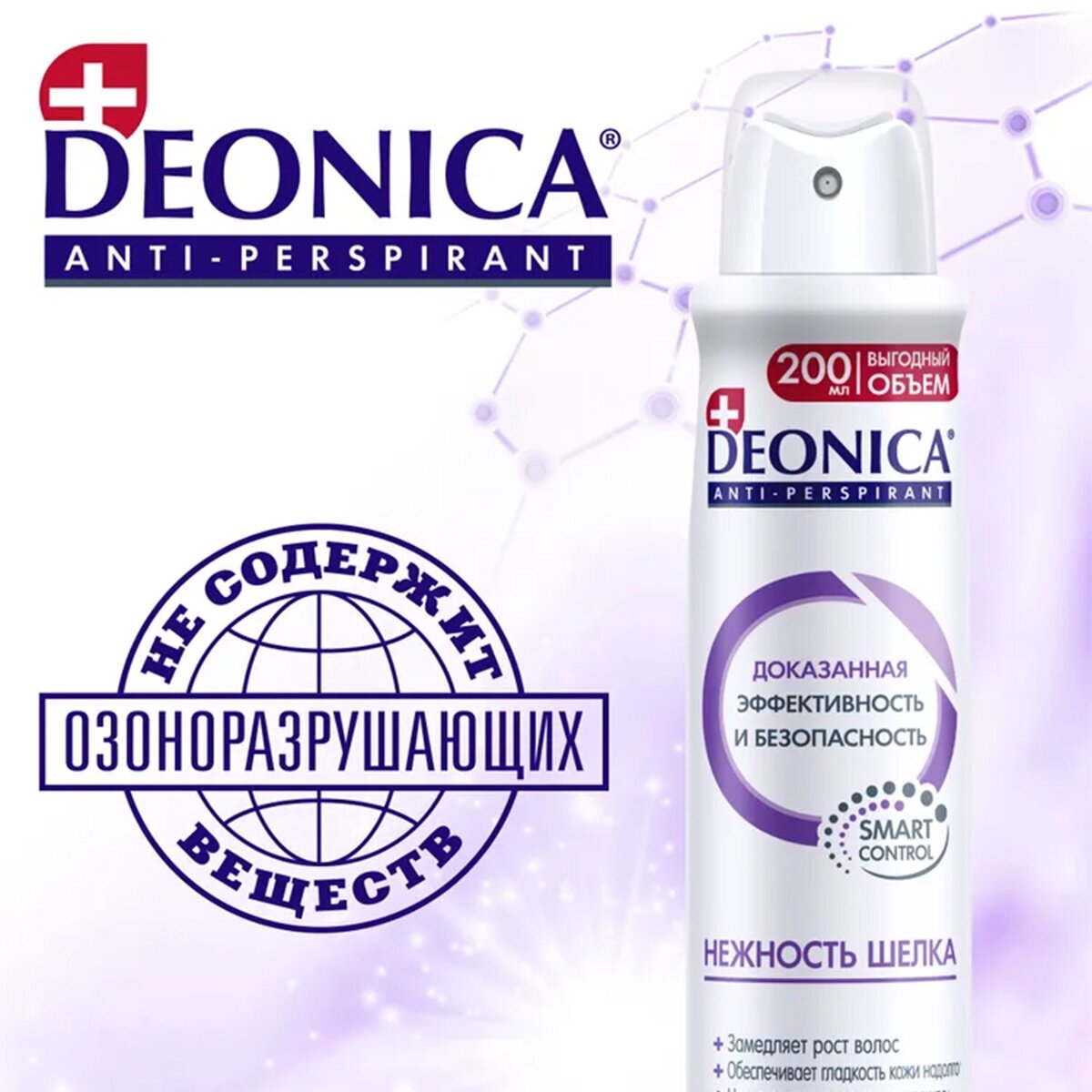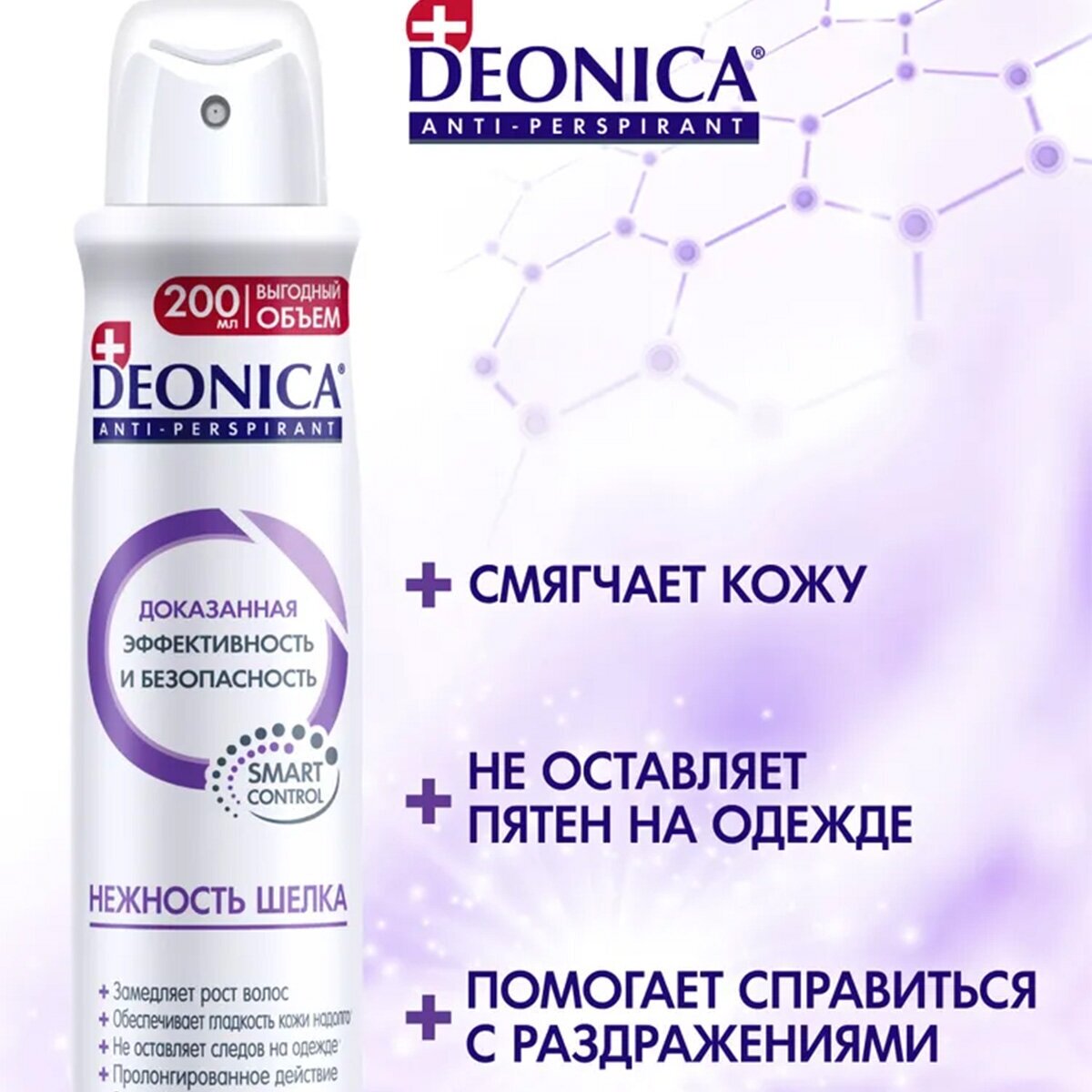 Deonica Антиперспирант "Нежность шёлка". Женский. Спрей, 200 мл. Защита и свежесть на 48 часов