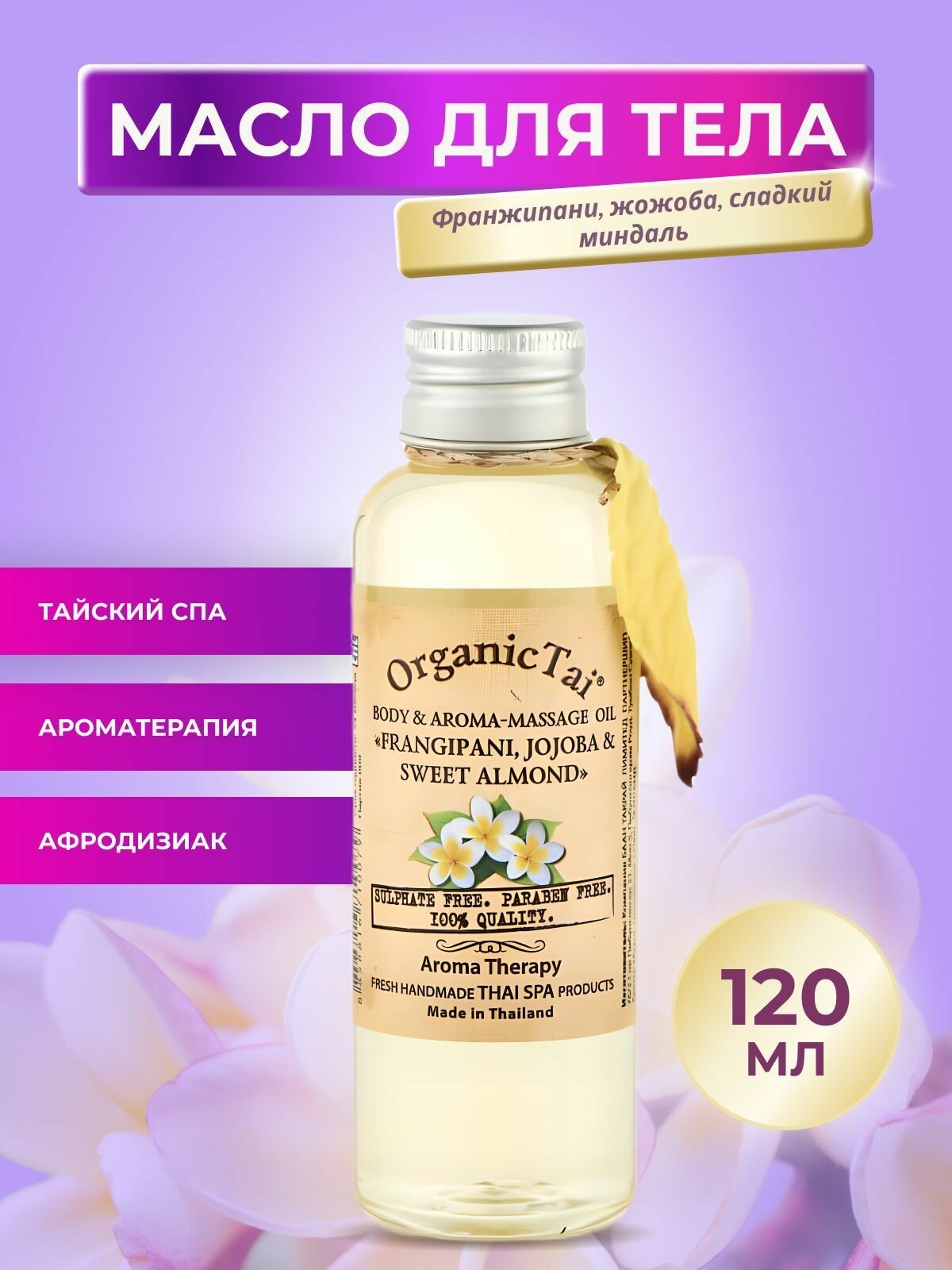 Масло для тела и аромамассажа «франжипани, жожоба И сладкий миндаль», 120 мл, OrganicTai