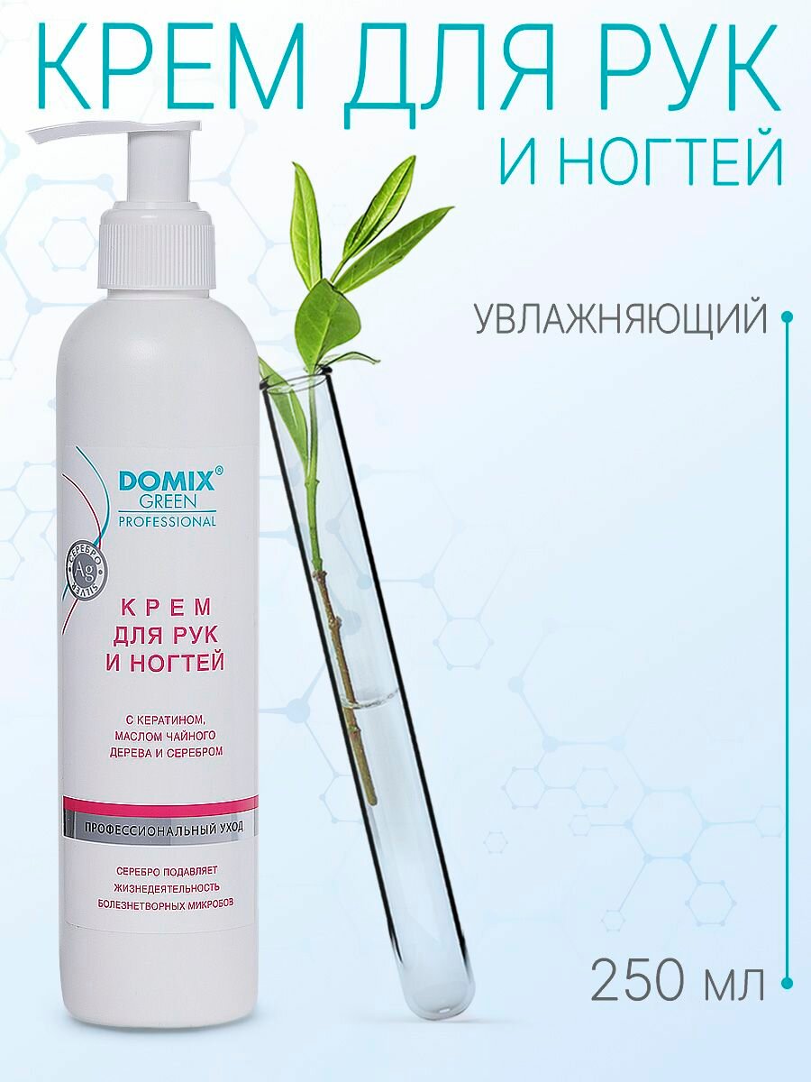 Domix Green Professional Крем для рук и ногтей с кератином, маслом чайного дерева и серебром, 250 мл