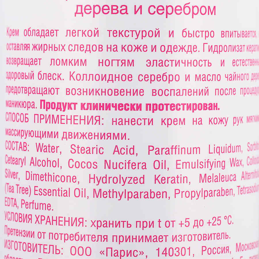 Крем для рук и ногтей с кератином, маслом чайного дерева и серебром, 500 мл