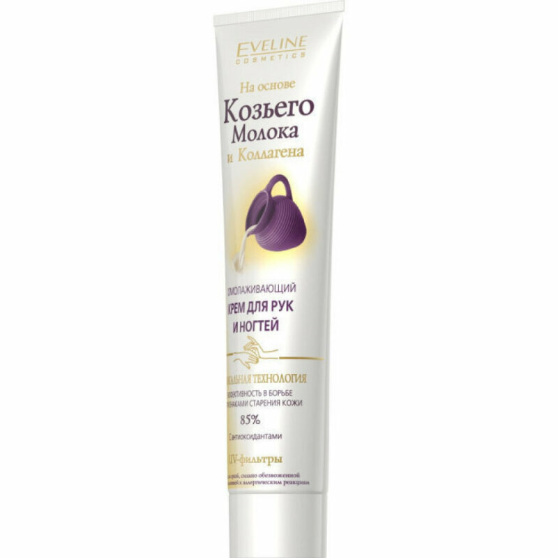 Крем для рук и ногтей EVELINE, омолаживающий, на основе козьего молока и коллагена, 125мл