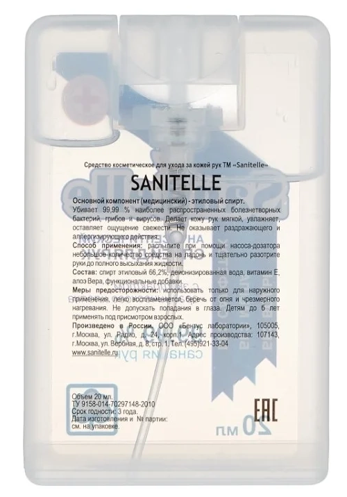 Sanitelle Антисептик для рук «Санитель», спрей 20 мл.
