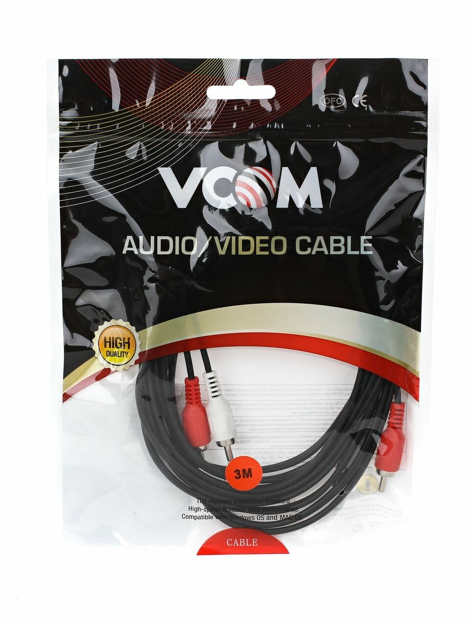 Кабель соединительный VCOM 2xRCA (M) / 2xRCA (M), чёрный, 3 м.