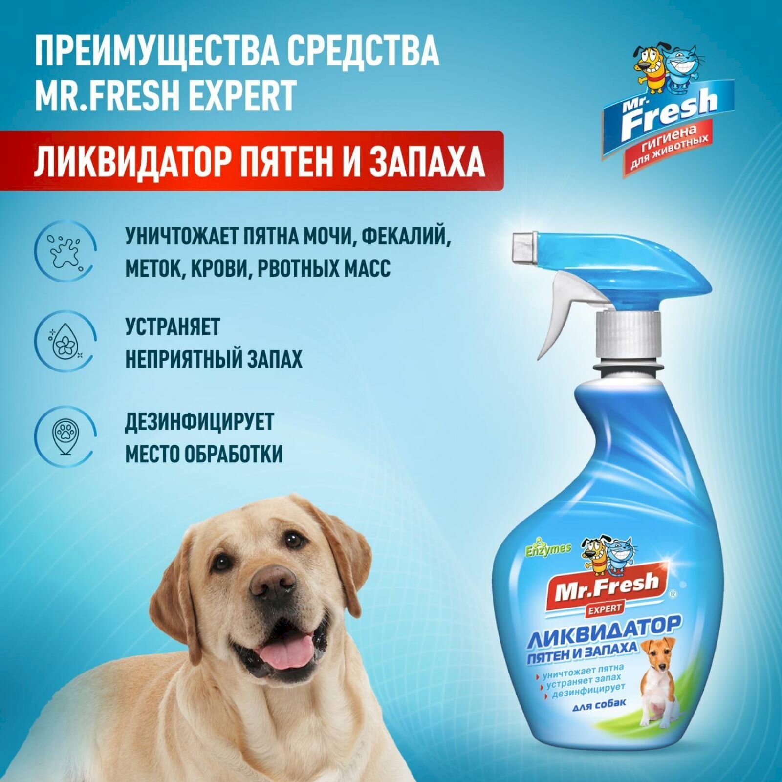 Mr.Fresh Expert 3в1 спрей ликвидатор пятен и запаха от собак - 500 мл