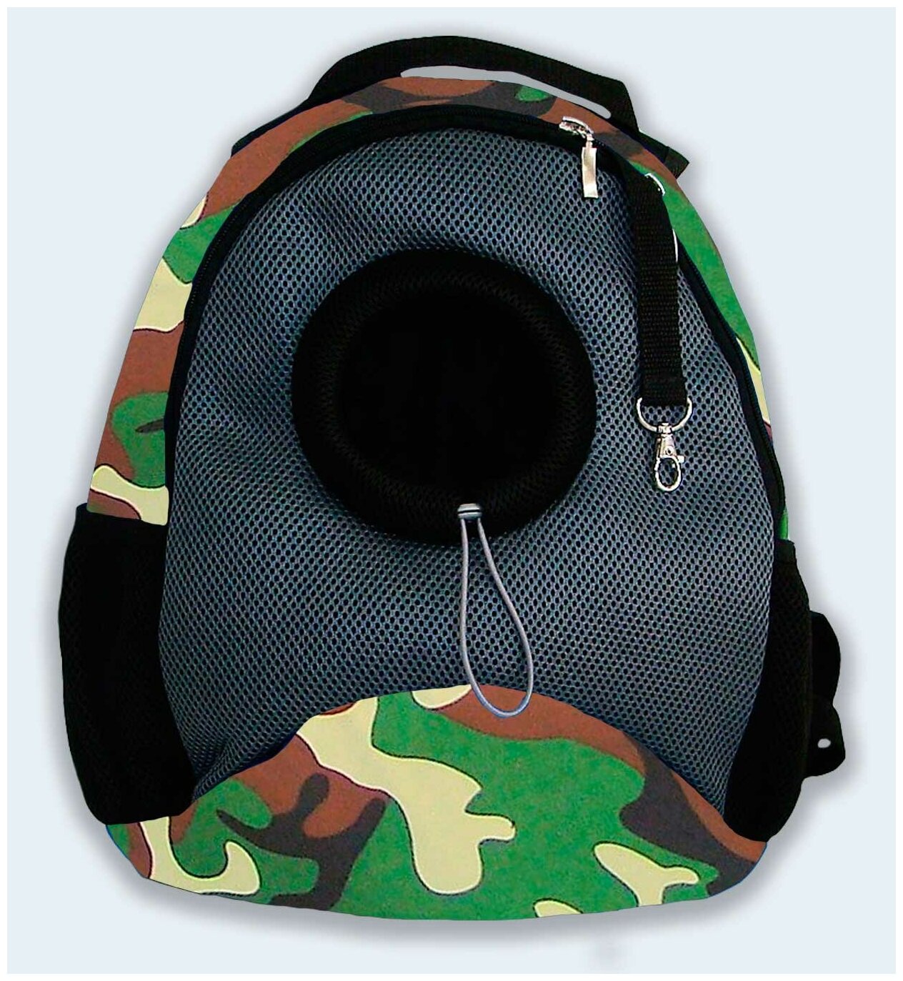 Рюкзак для собак и кошек Melenni Эконом M зелёный камуфляж/черная сетка, 41x38x22, см;Вес: 600 гр.