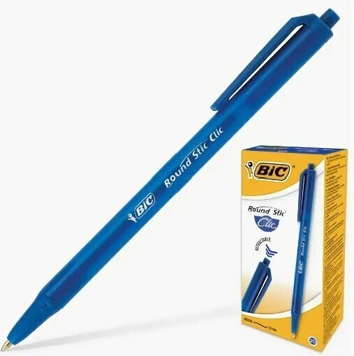 Ручка шариковая автоматическая Bic "Round Stic Clic" синяя, толщина стержня 1,0 мм, толщина линии письма 0,32 мм, упаковка 20 шт.