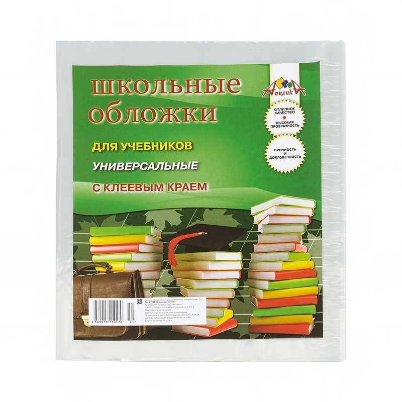 Купить Обложка для учебника Апплика универсальная, с клеевым краем, 5 штук (233х405 мм) (С2253)