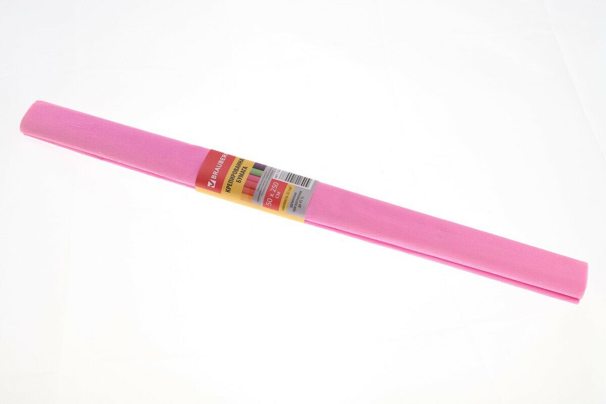 Купить Бумага цветная крепированная Brauberg, 50x250см, плотная, растяжение до 45%, 32 г/кв.м, розовая, в рулоне, 1 лист (126532)