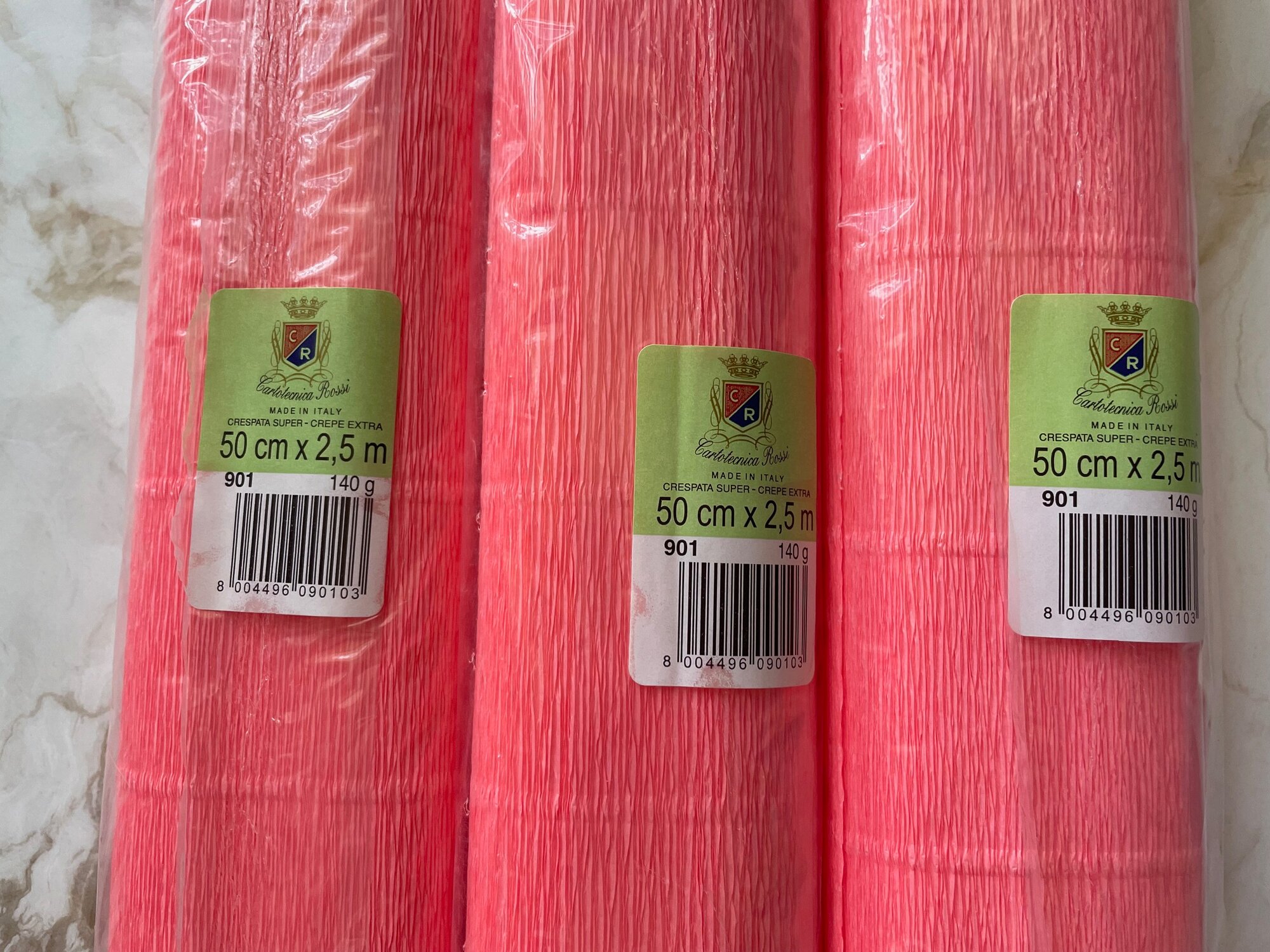 Бумага гофрированная Cartotecnica №901 Rossi, 140г/м², 50x250см, в рулоне