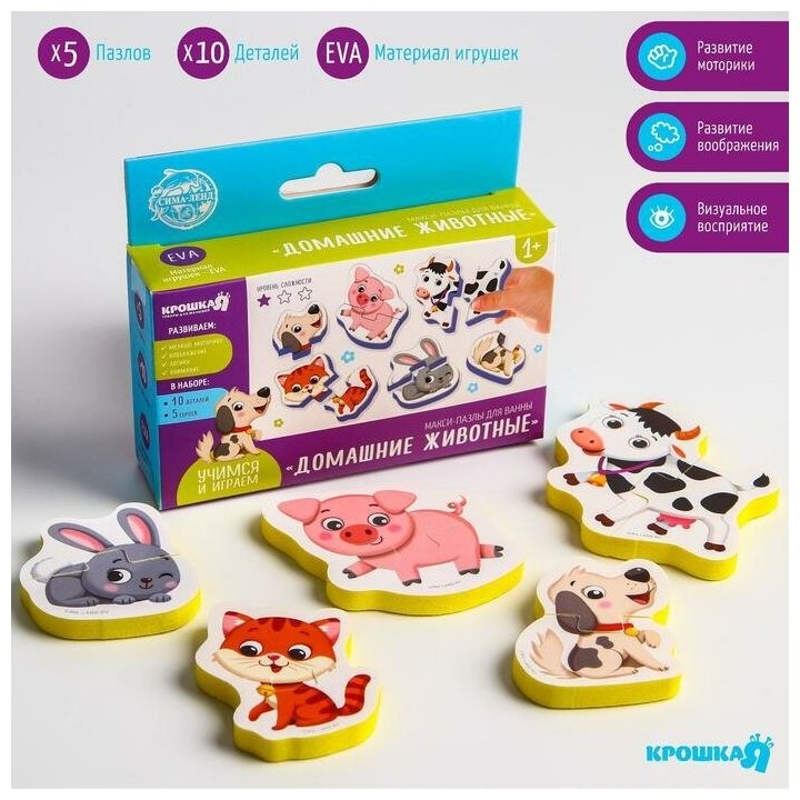 Макси - пазлы для игры в ванне двойные "Домашние животные", 5 пазлов, 10 мягких деталей интересное: