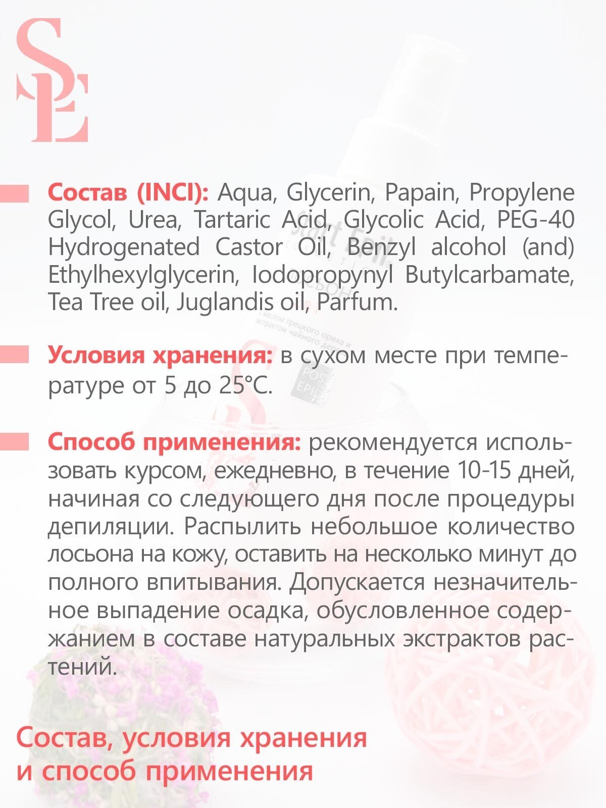 | Отзыв: | Использую после эпилятора, у меня волосы сами по себе отрастают очень быстро, лосьон продлевает эффект, посмотрим, как будет после длительного применения |