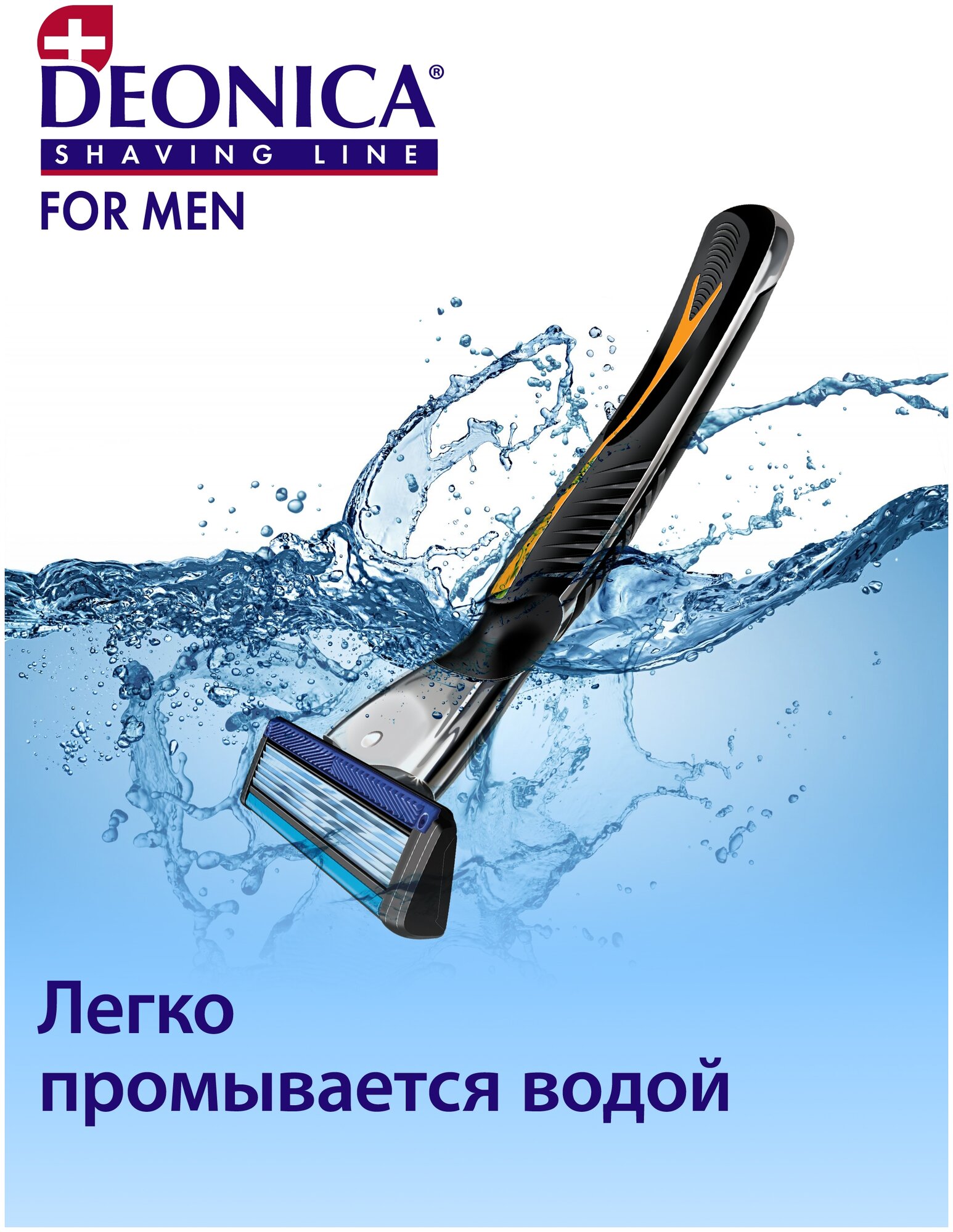 Бритва для мужчин 6 лезвий с алмазным покрытием, подвижной головкой Active Motion и комплексом Micro Silver, Deonica