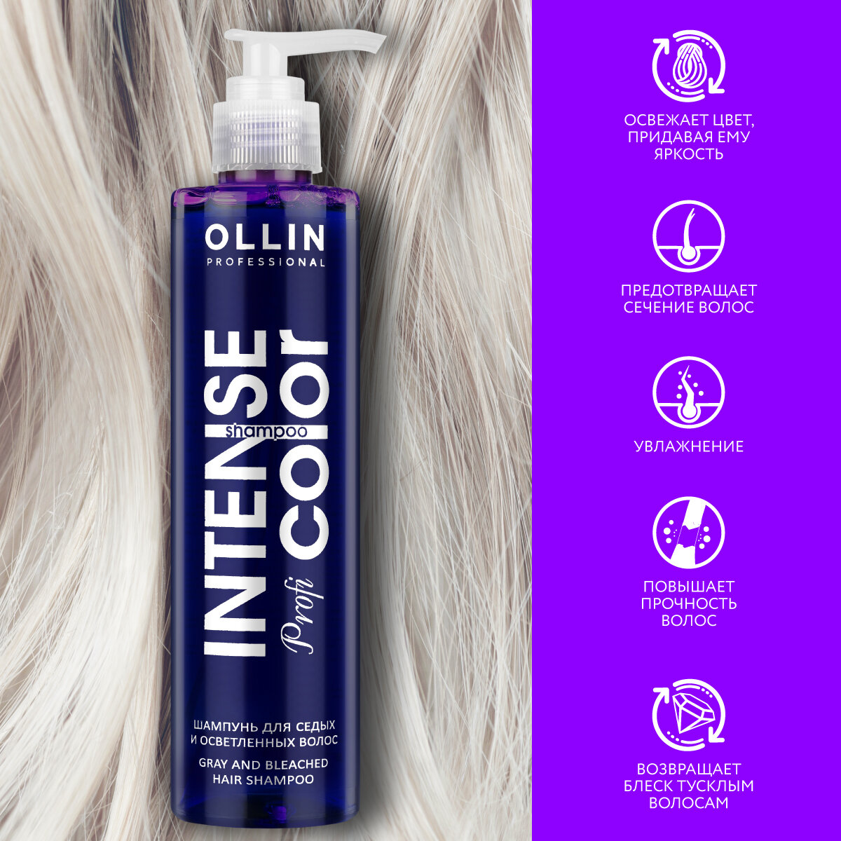 OLLIN / INTENSE Profi COLOR – Шампунь для седых и осветленных волос, 250 мл
