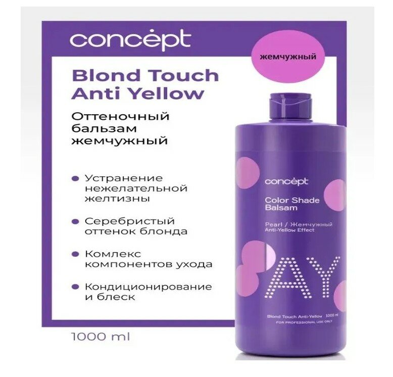 Concept, Оттеночный бальзам жемчужный блонд ANTI-YELLOW, 1000 мл