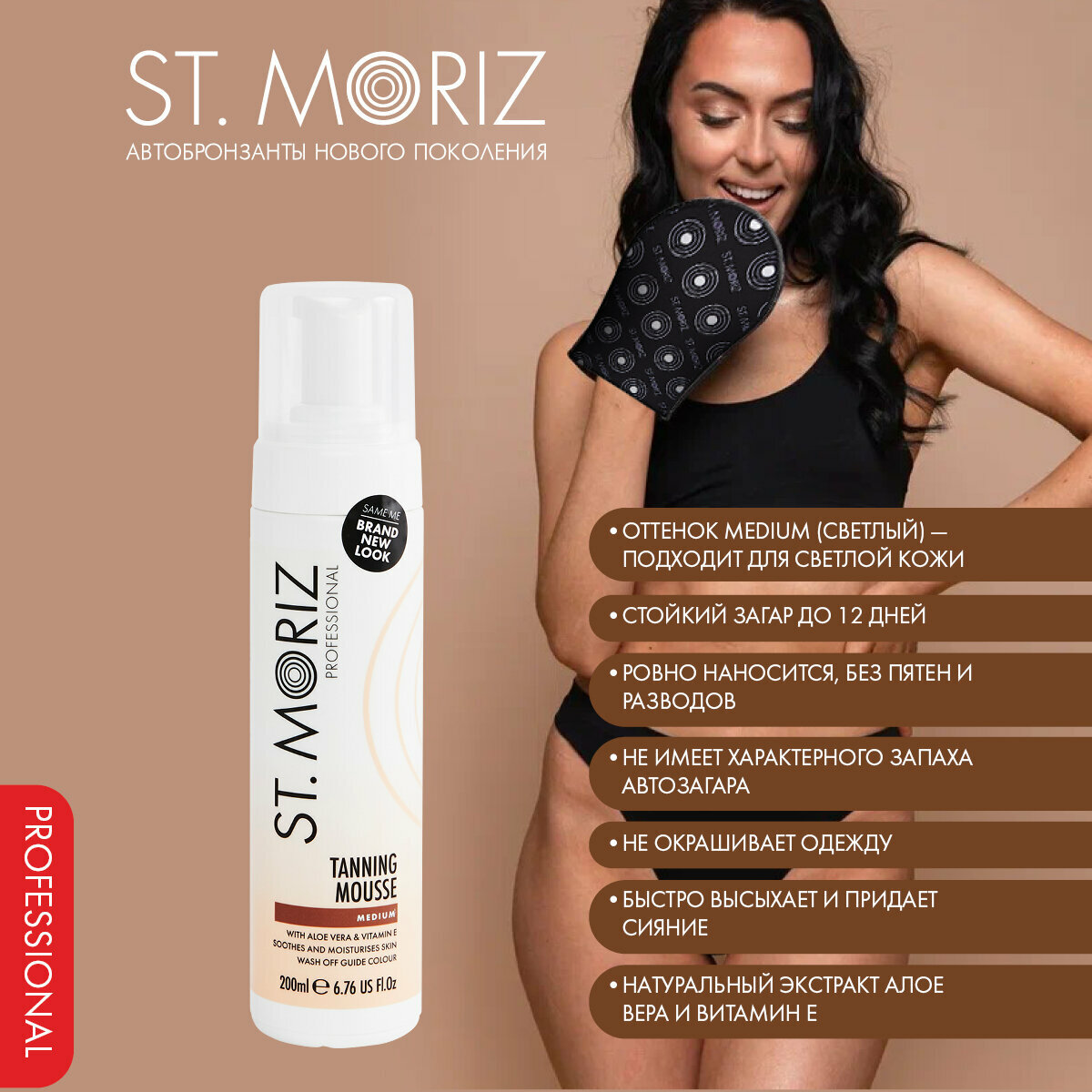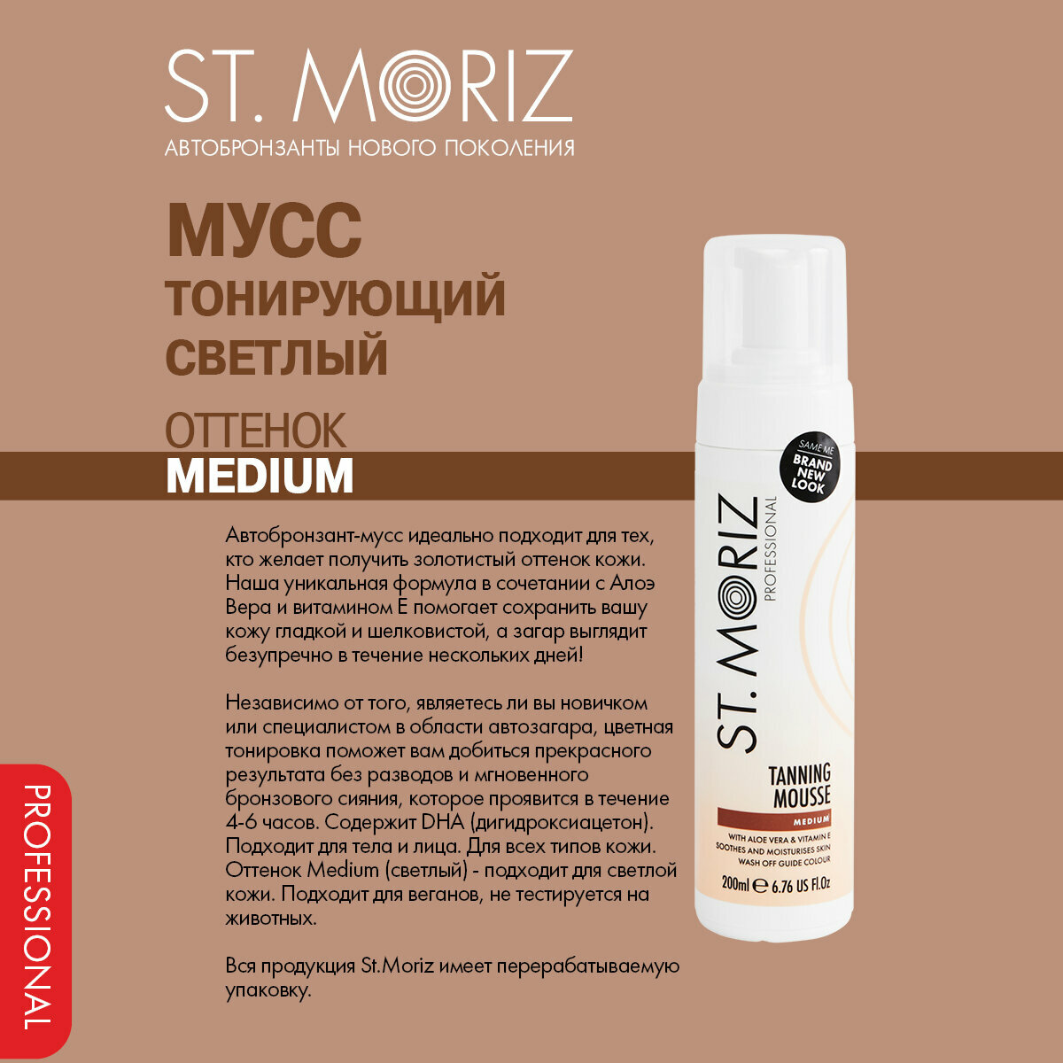 St. Moriz Автобронзант-мусс тонирующий" Professional", светлый оттенок, 200 мл