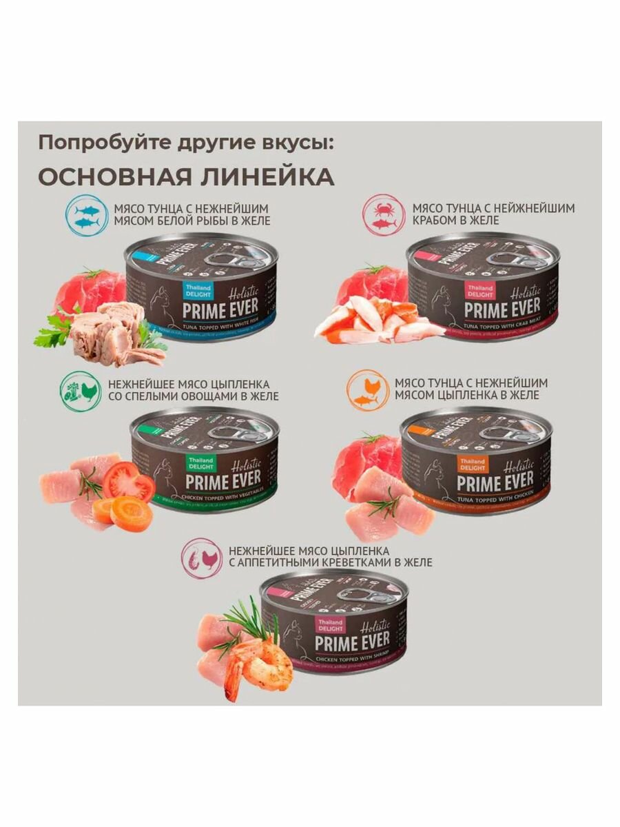 Влажный корм для кошек, тунец с цыпленком в желе, холистик, Prime Ever, упаковка 24 шт х 80 г